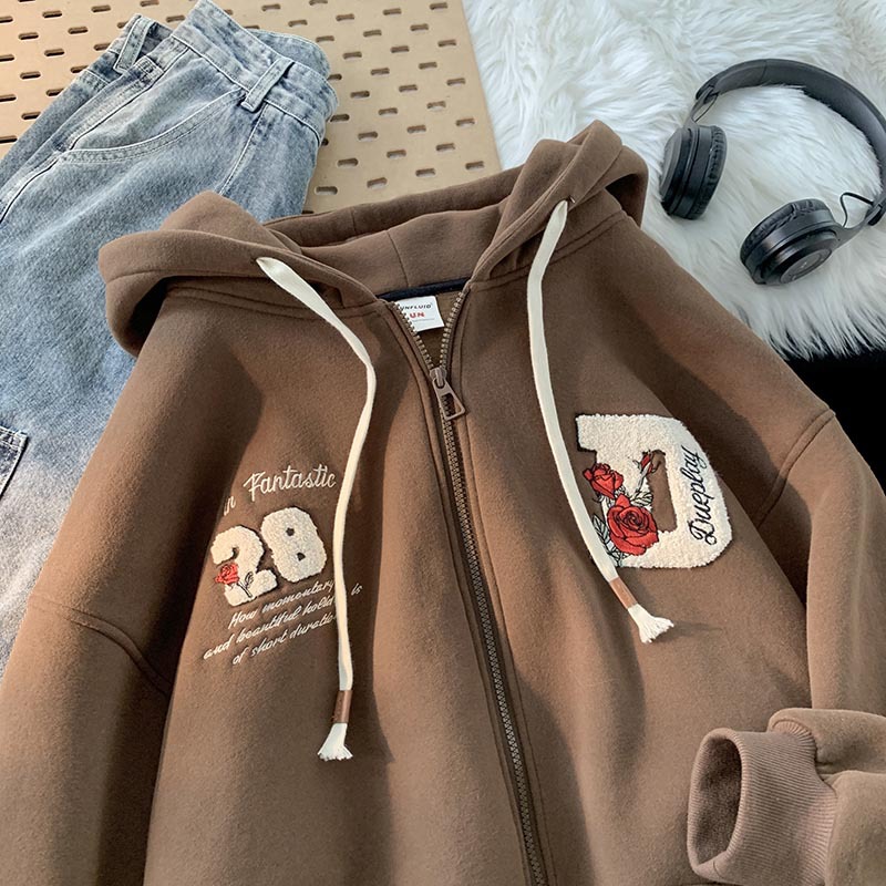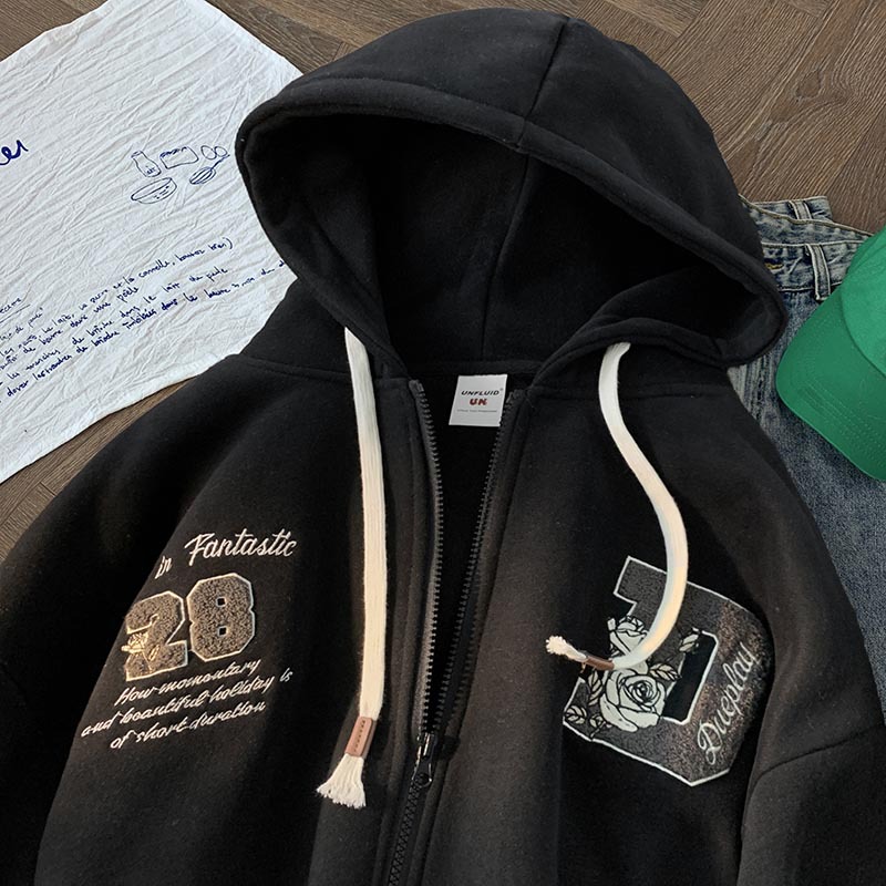 살구색 편지 타월 자수 카디건 스웨터 남자의 후드 가을과 겨울 미국 복고풍 유행 코트 커플 탑스토어 가기