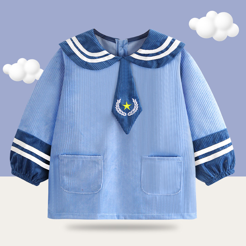 가을과 겨울 어린이 커버 올 코듀로이 대학 스타일 방수 더러운 턱받이 역 드레싱 아기 긴 소매 아기 먹는 옷스토어 가기