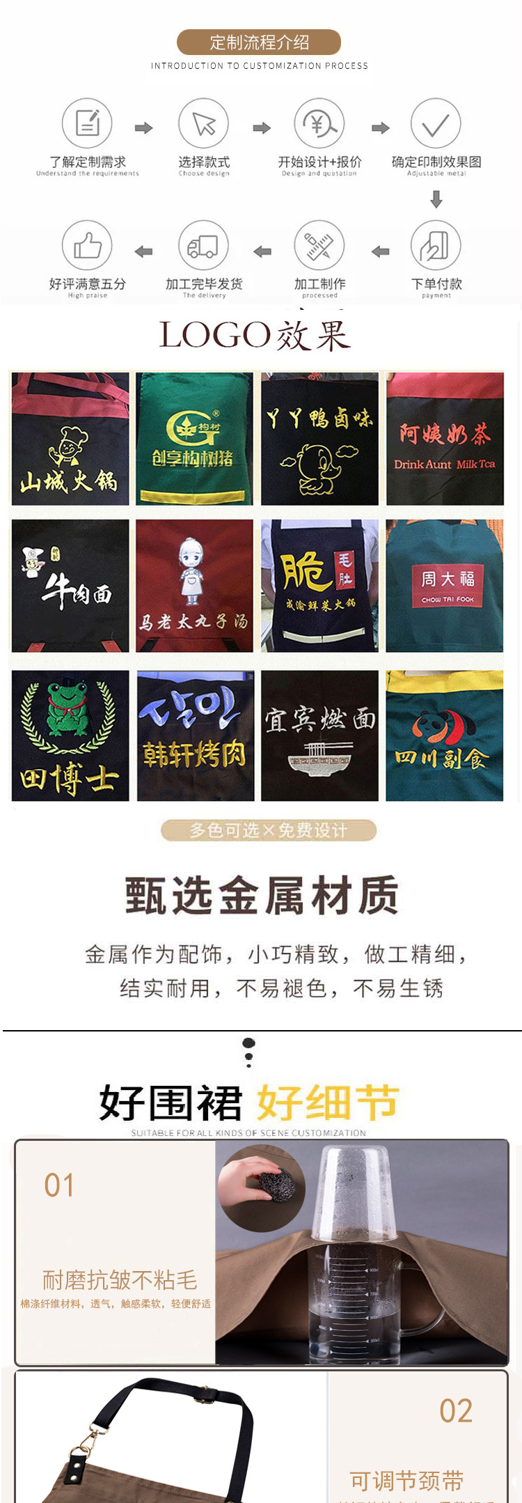 대외 무역 고삐 방수 캔버스 앞치마 도매 홈 주방 바베큐 그림 요리 작업복 앞치마 인쇄 로고