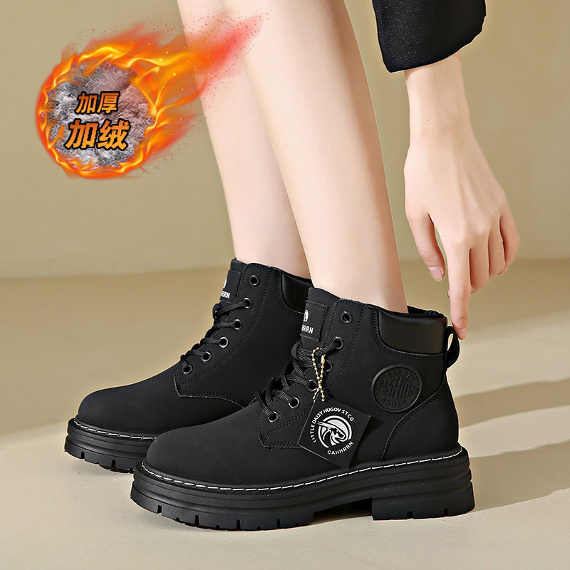 남성과 여성을 위한 가을 겨울 커플 레드 부츠, 벨벳으로 두꺼워진 따뜻한 면화, 하이탑 작업복, 빅 헤드 라이브 마틴 숏부츠