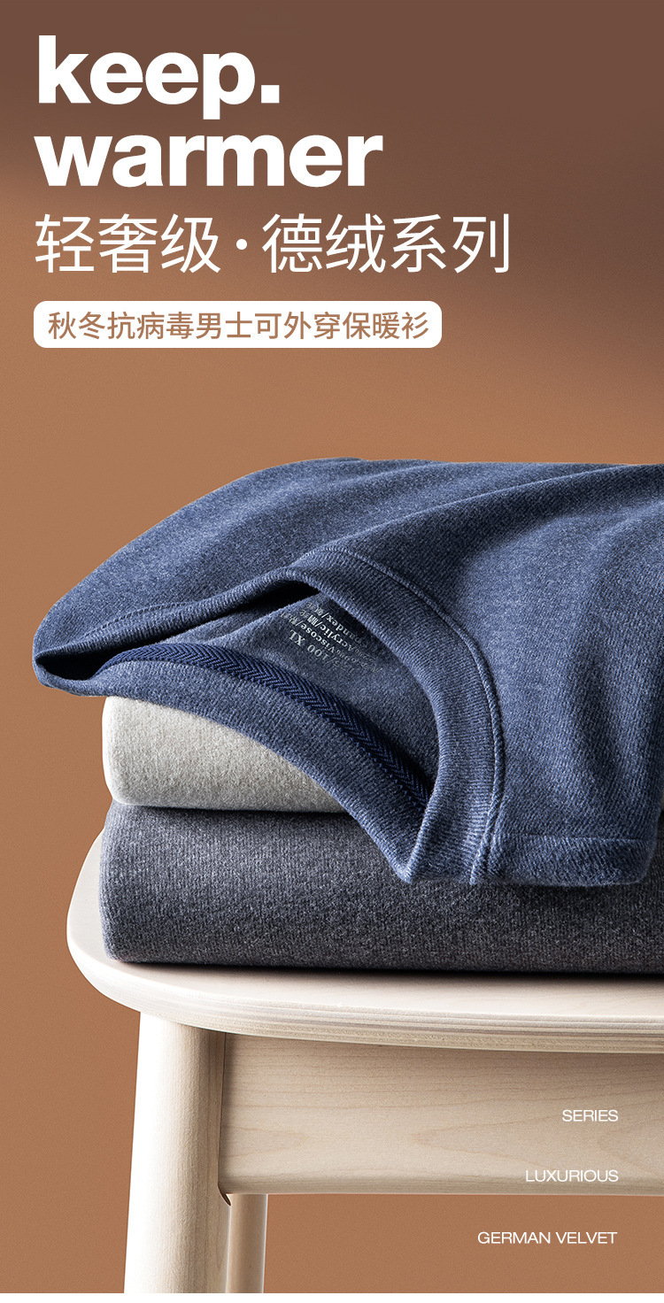 독일 벨벳 가을과 겨울 열 속옷 남성용 세미 하이 칼라 크루 넥 베이스 셔츠 기모 두꺼운 가을 옷 단색 작은 셔츠