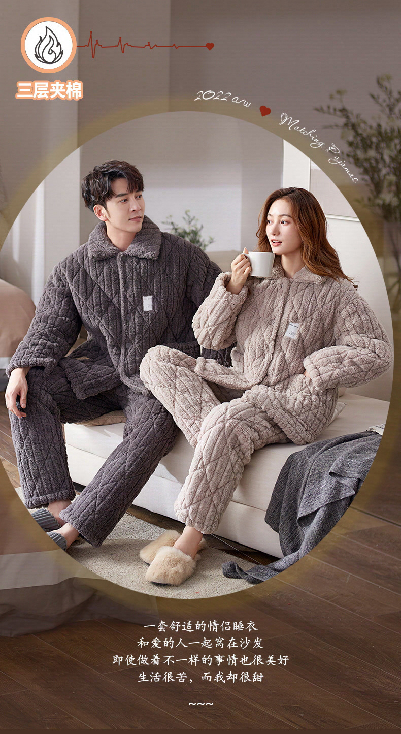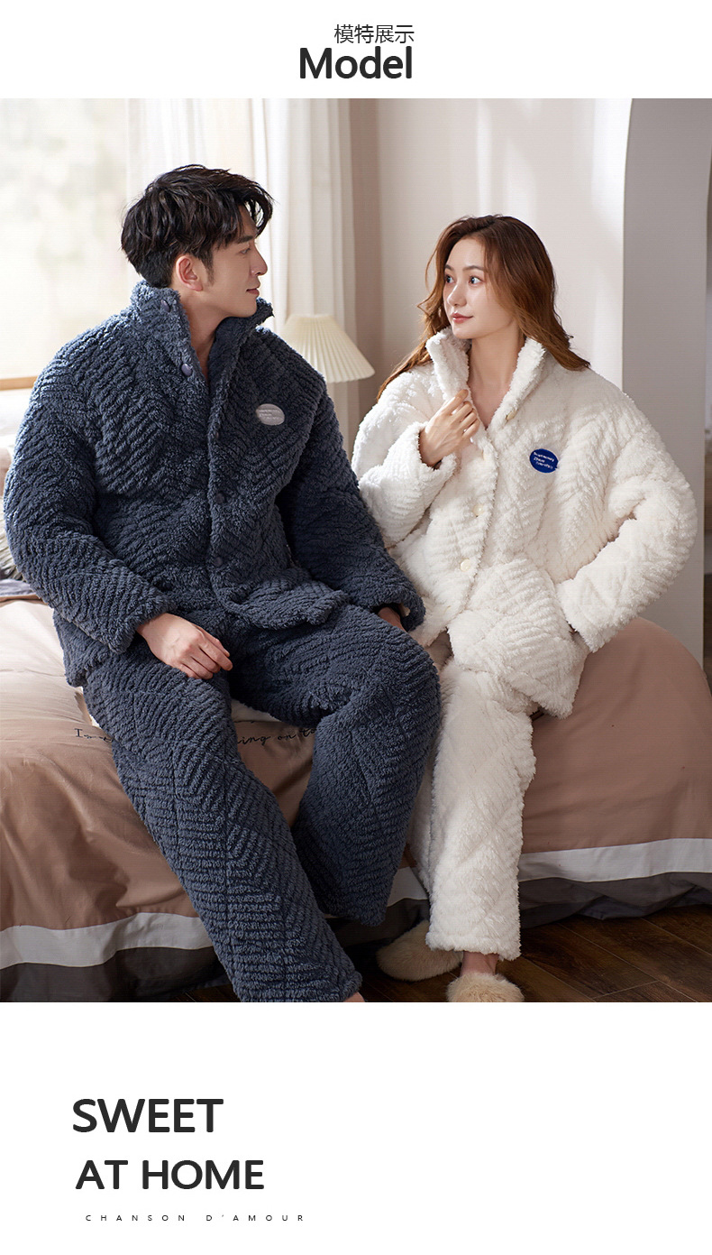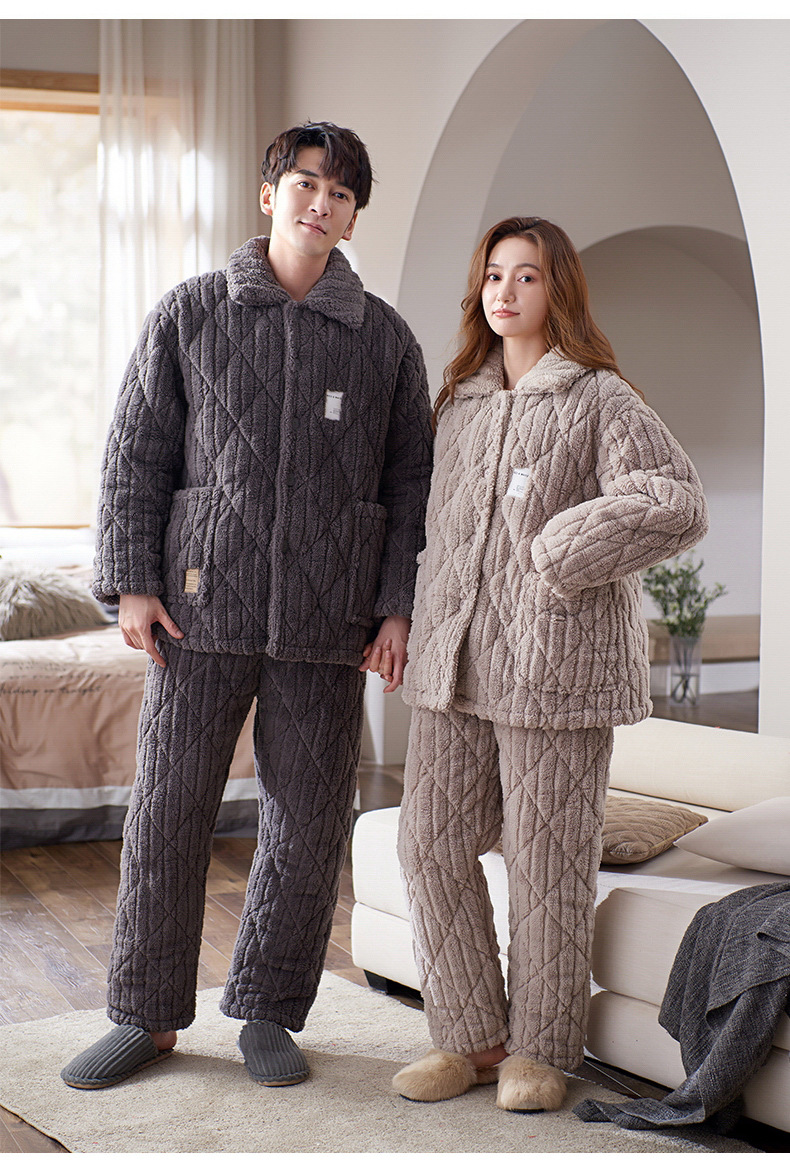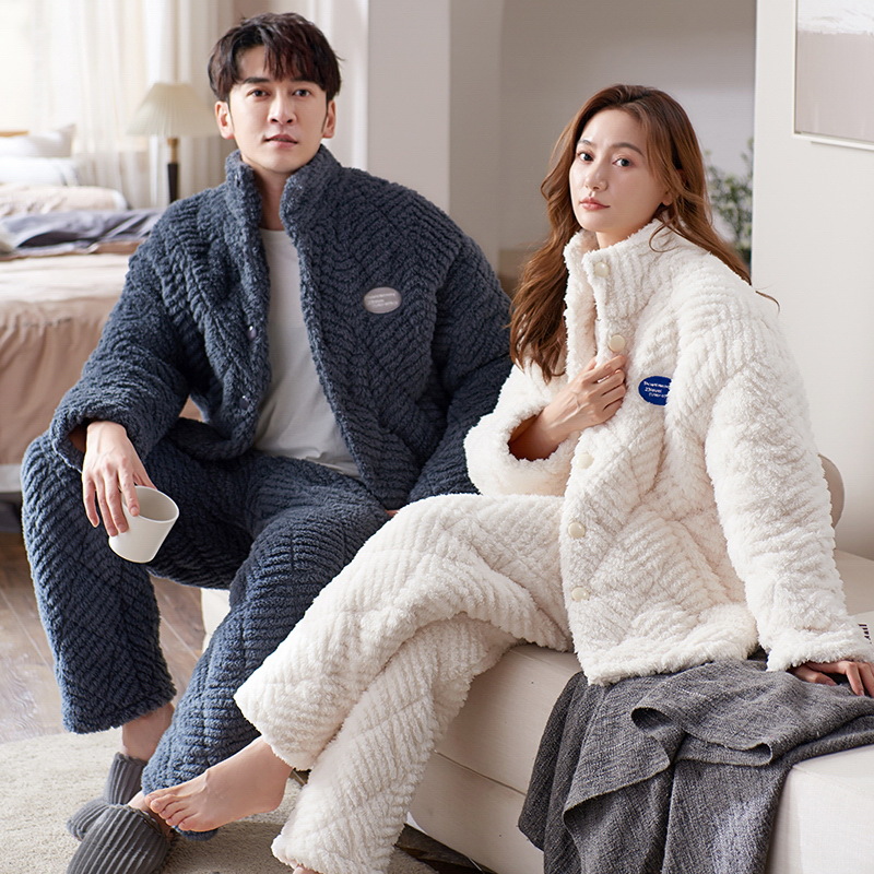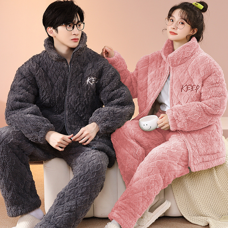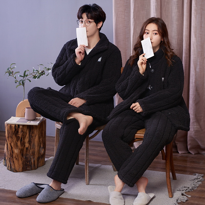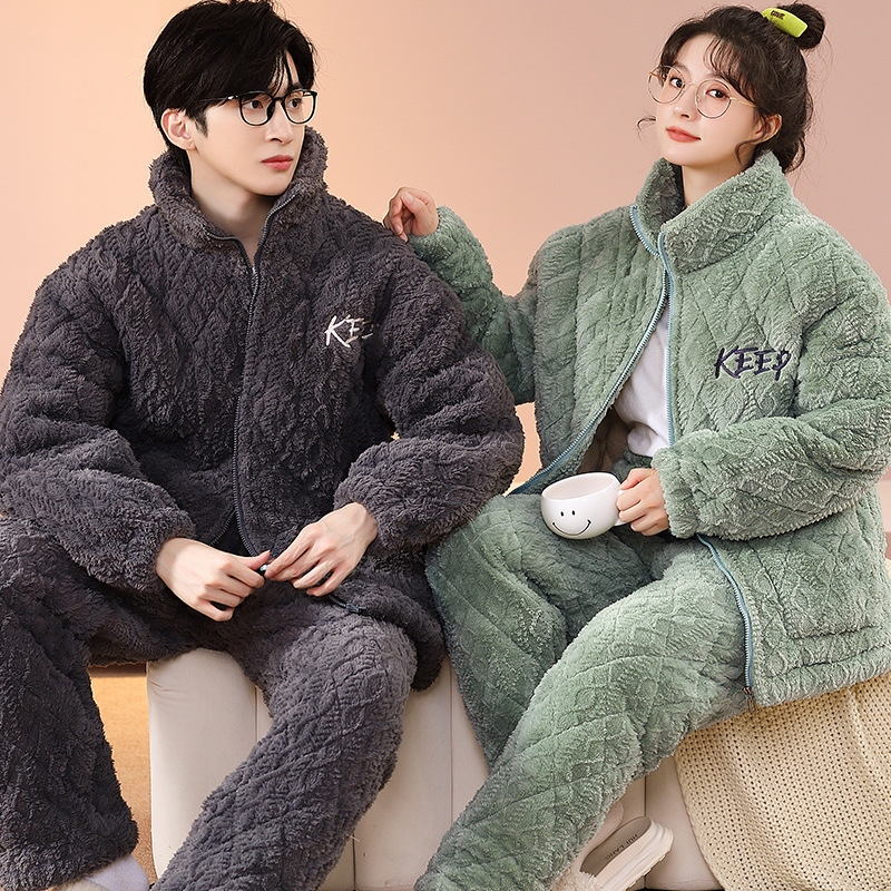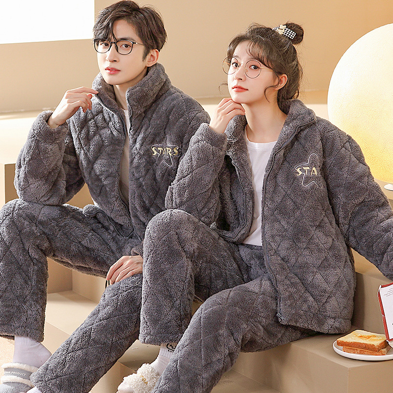 사슴 커플 잠옷 겨울 두꺼운 기모 3 층 면 산호 양털 따뜻한 남성과 여성의 가정 의류 세트스토어 가기