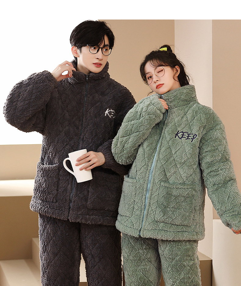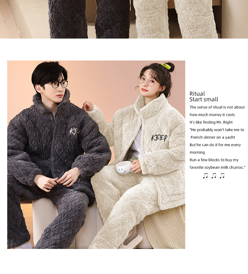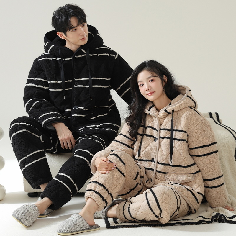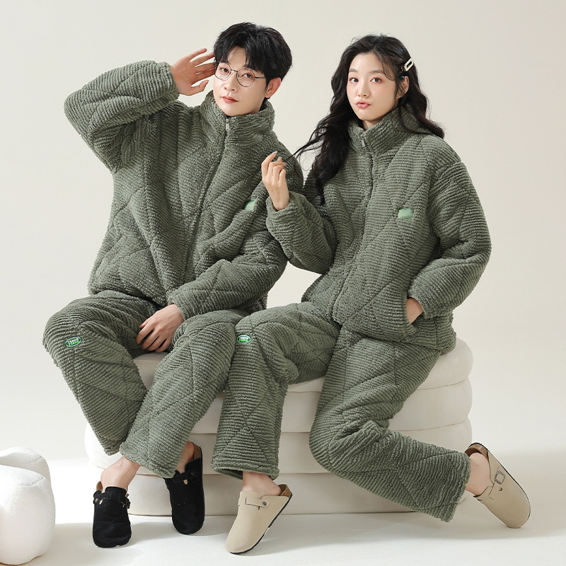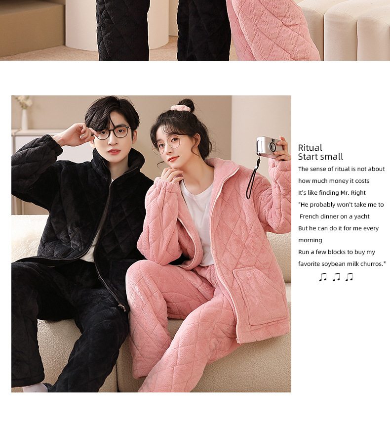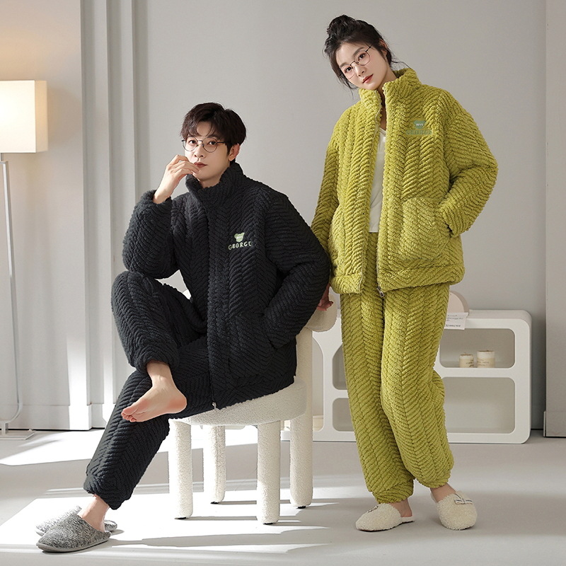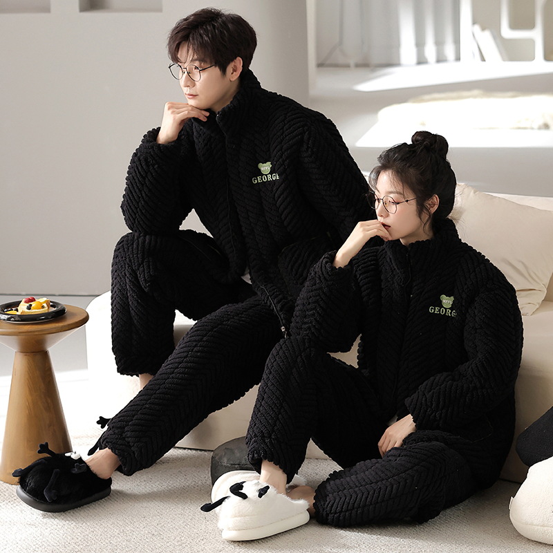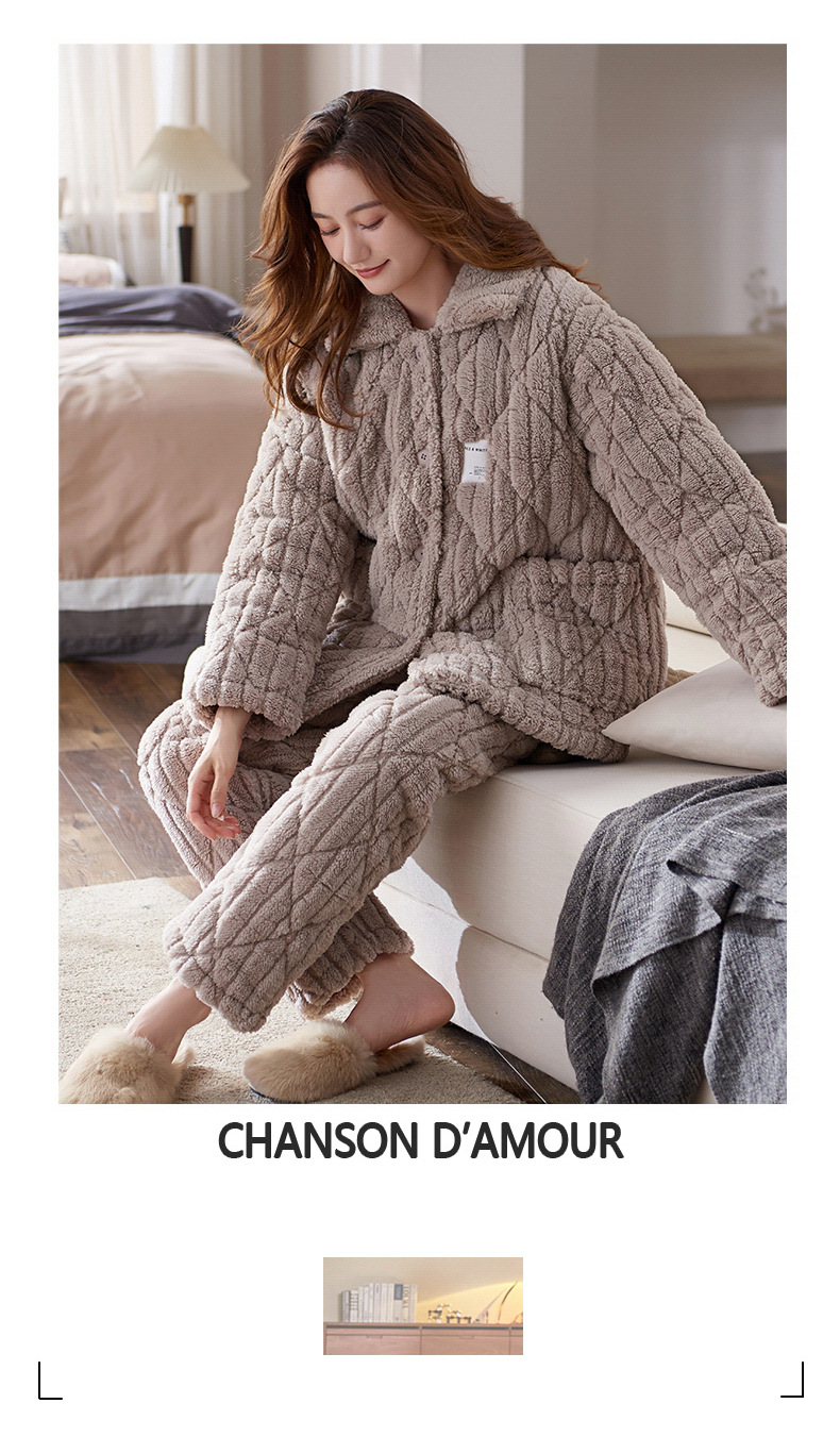 사슴 커플 잠옷 겨울 두꺼운 기모 3 층 면 산호 양털 따뜻한 남성과 여성의 가정 의류 세트스토어 가기