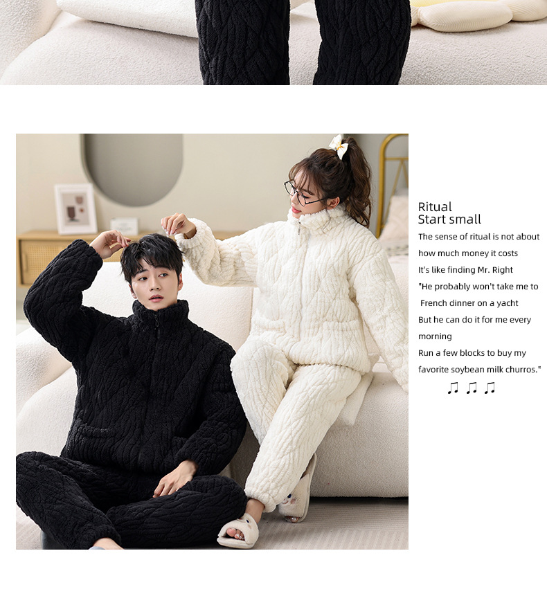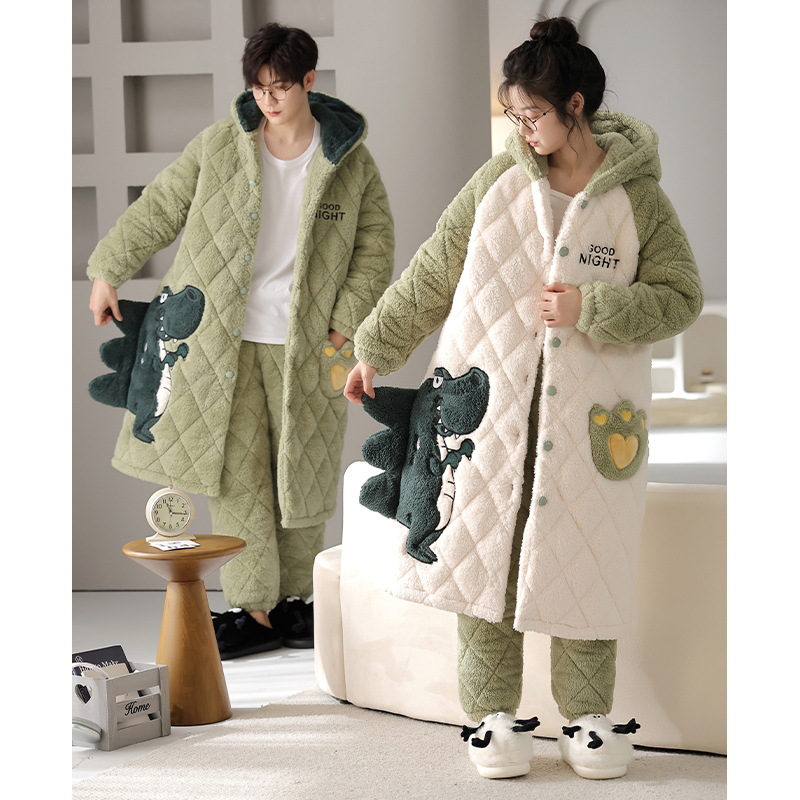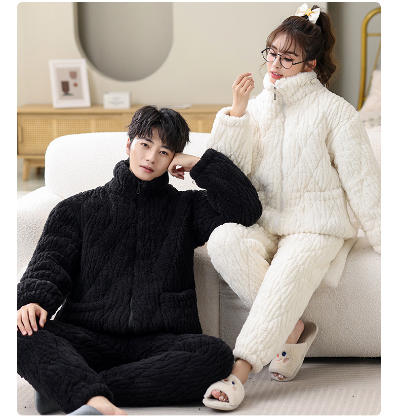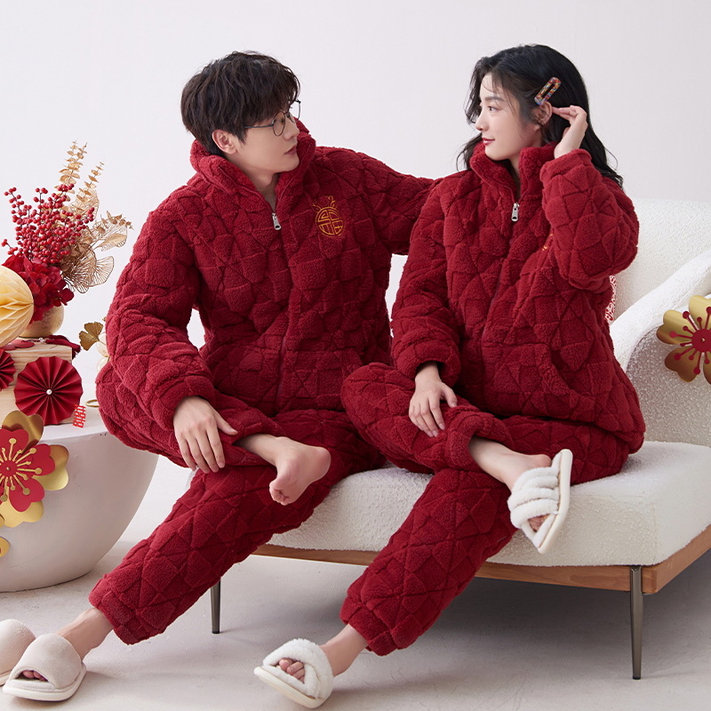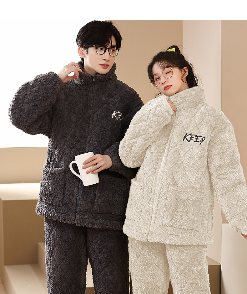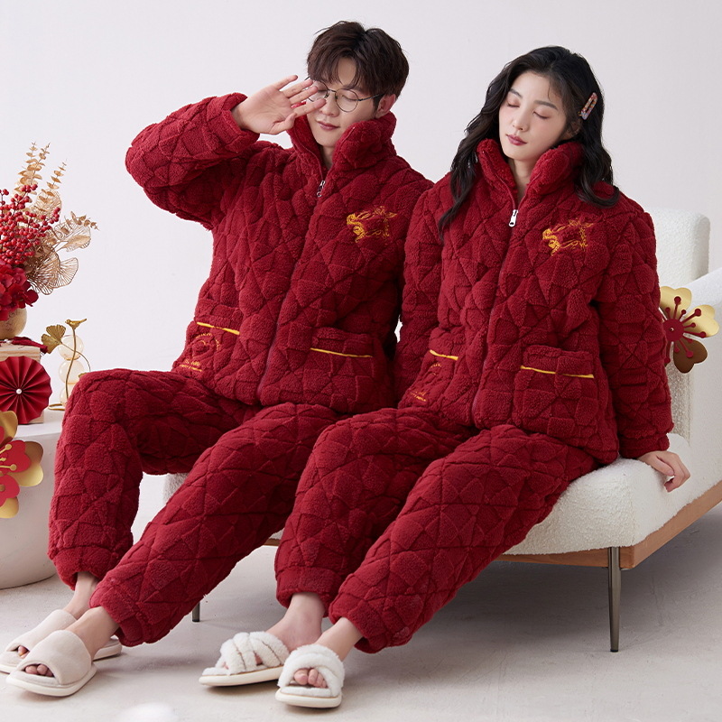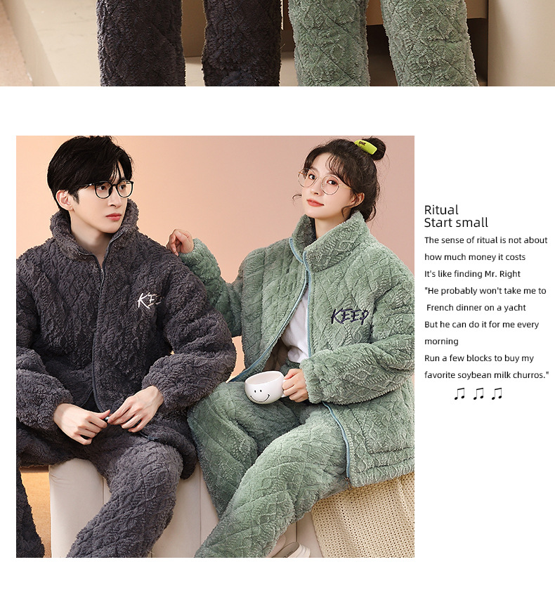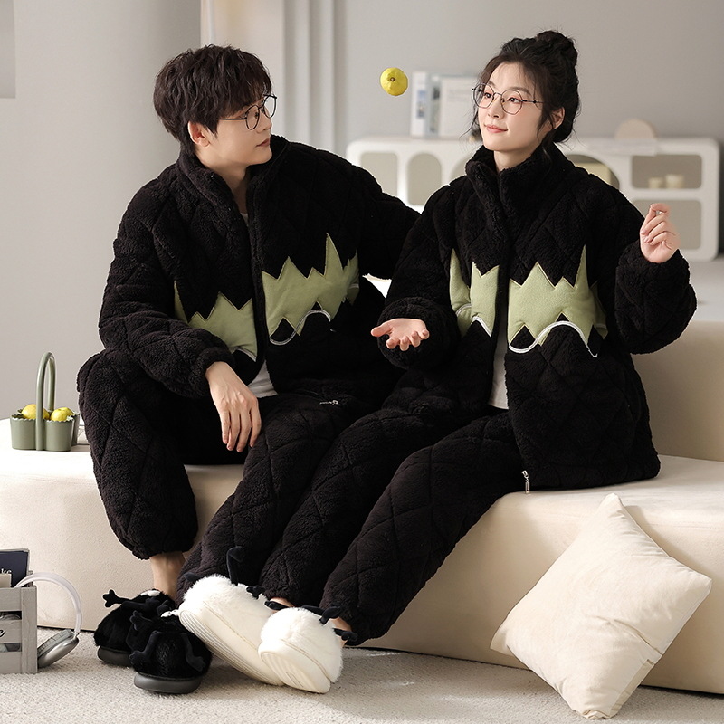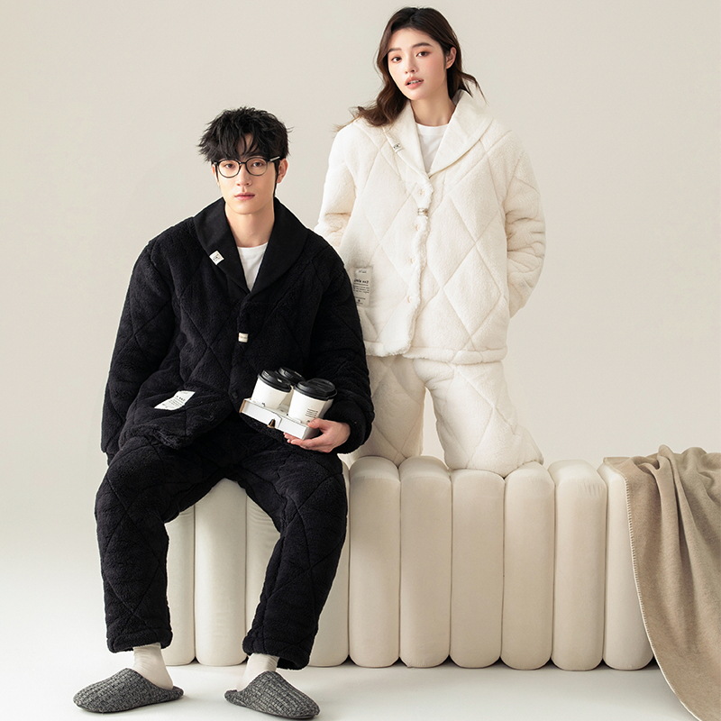 사슴 커플 잠옷 겨울 두꺼운 기모 3 층 면 산호 양털 따뜻한 남성과 여성의 가정 의류 세트스토어 가기