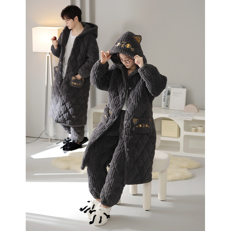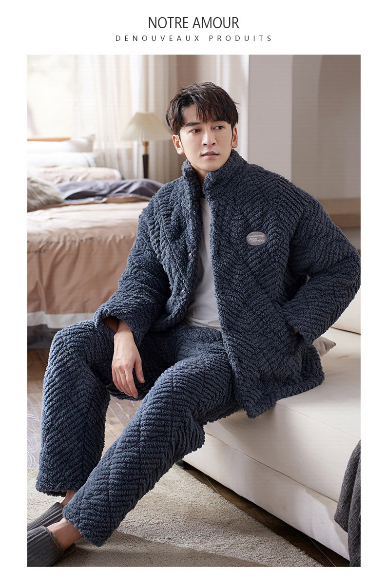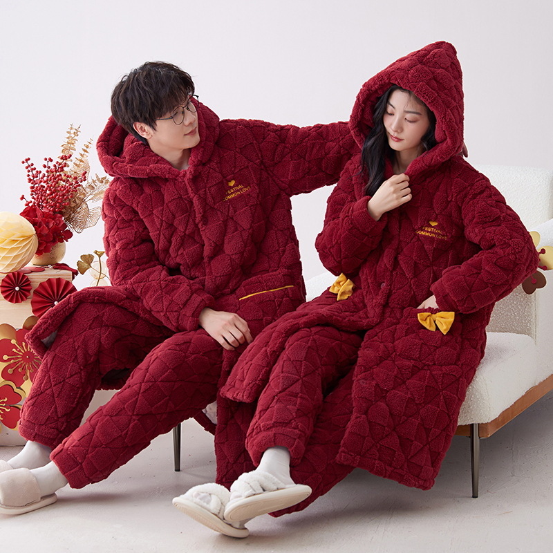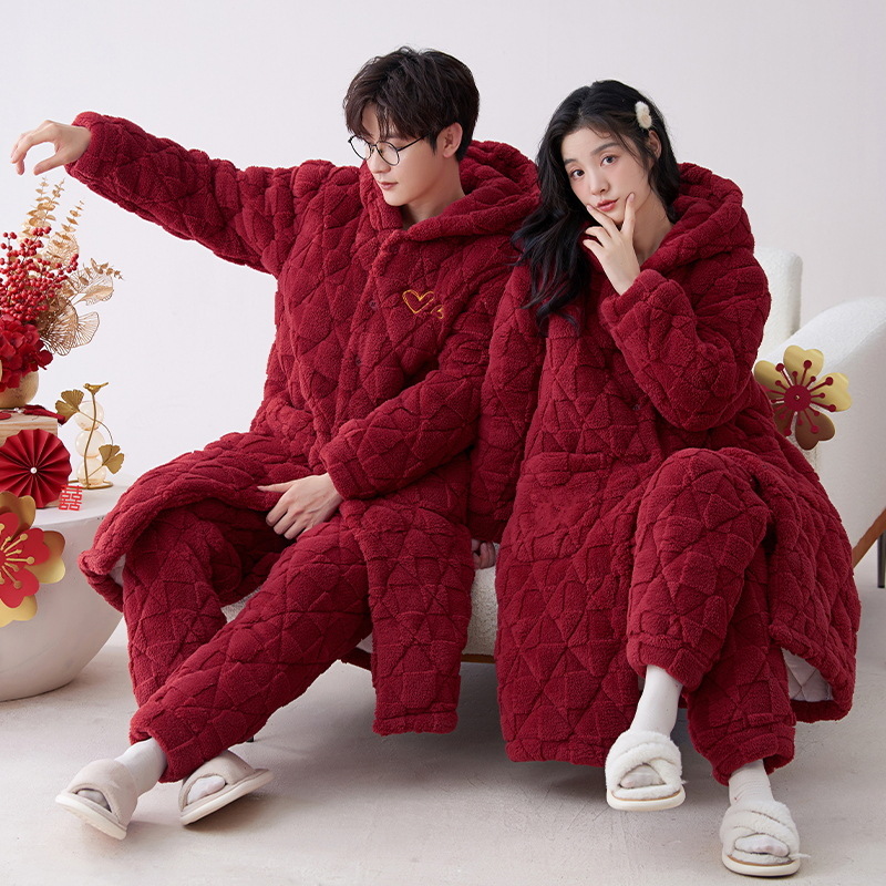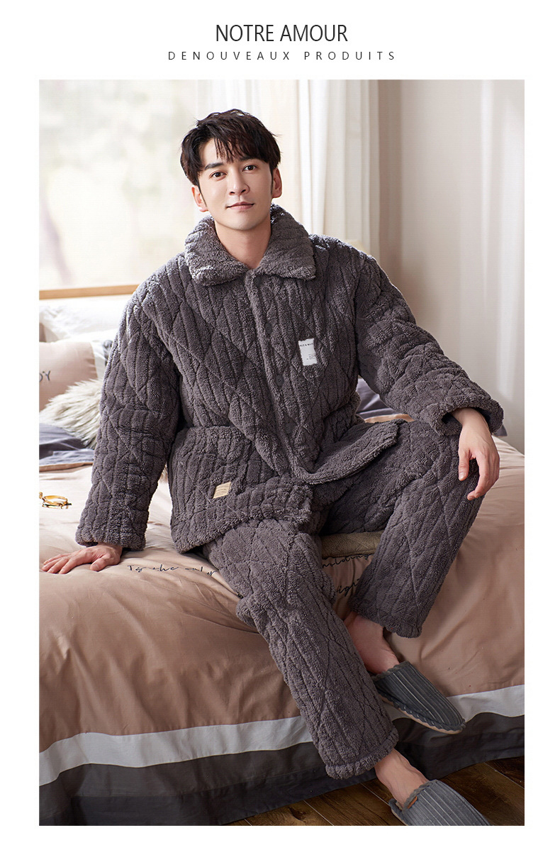사슴 커플 잠옷 겨울 두꺼운 기모 3 층 면 산호 양털 따뜻한 남성과 여성의 가정 의류 세트