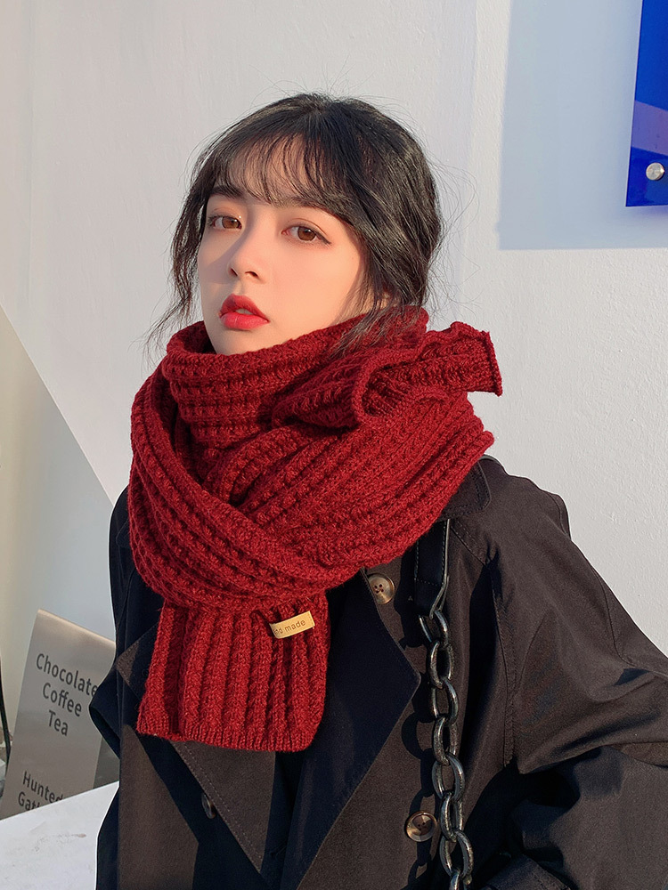 2025 다용도 한국 스타일 니트 모직 단색 스카프 여성용 가을 겨울 학생용 두꺼운 커플용 스카프 한국 스타일 롱 스카프