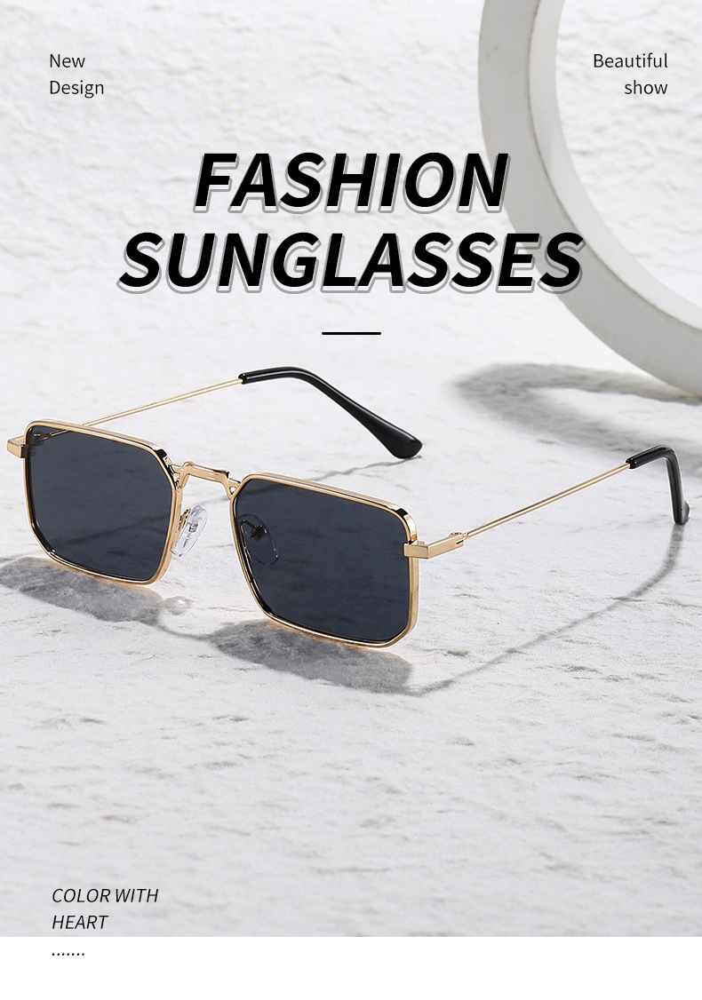 유럽과 미국의 새로운 사각형 프레임 남성 선글라스 힙합 ins 홍콩 스타일 선글라스 여성 패션 트렌드 금속 선글라스