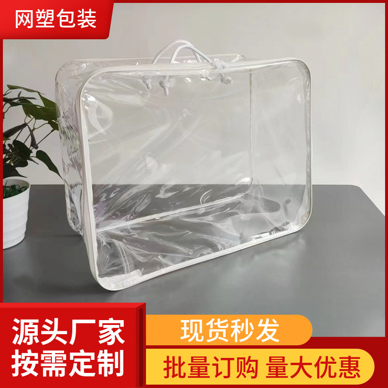 재고 PVC 투명 핸드 헬드 스틸 와이어 가방 홈 섬유 담요 스틸 와이어 가방 이불 담요 포장 가방 보관 용 에어컨