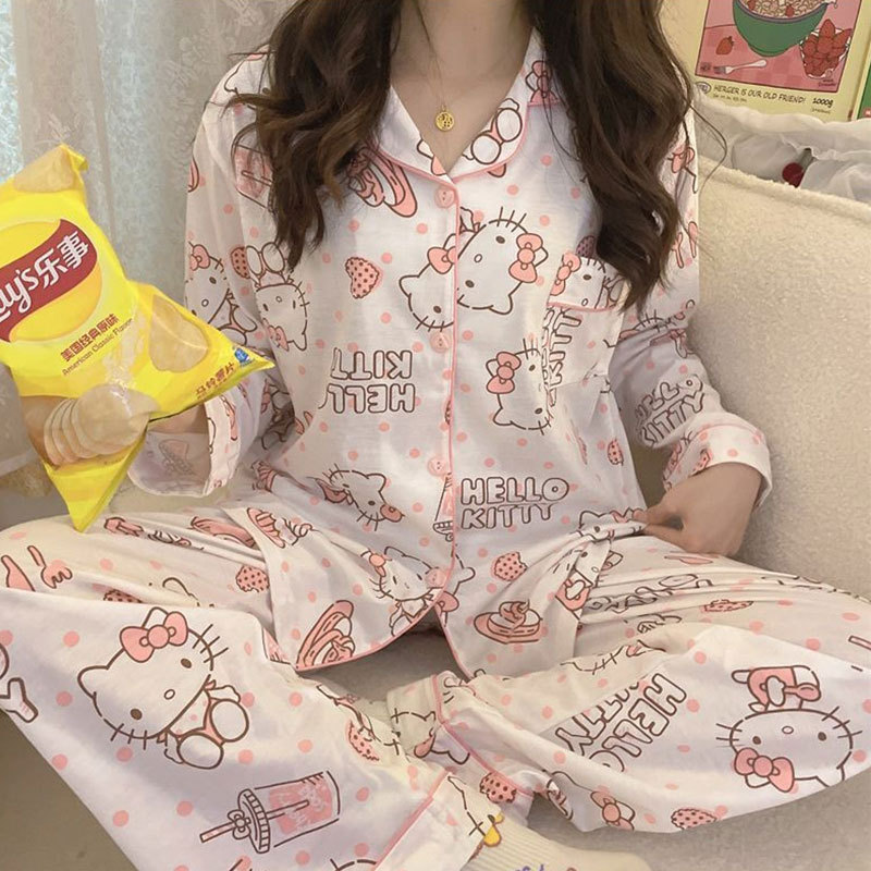 • S 파우더 헬로 키티 가디건 롱 세트 (모조 코튼)