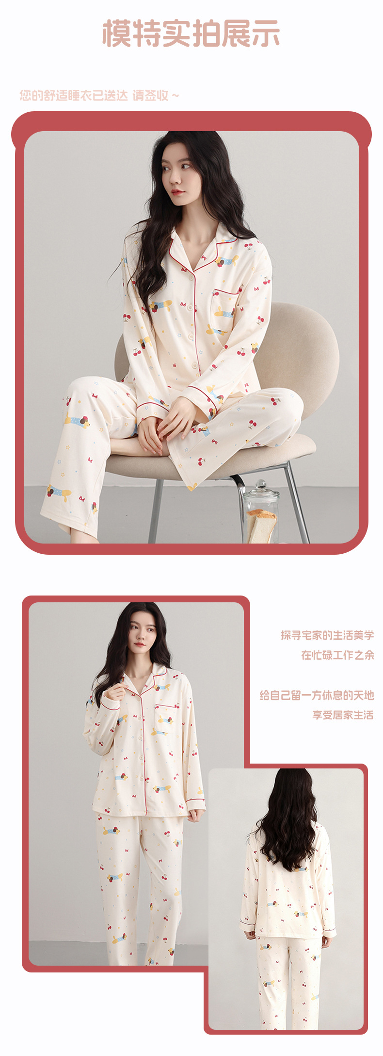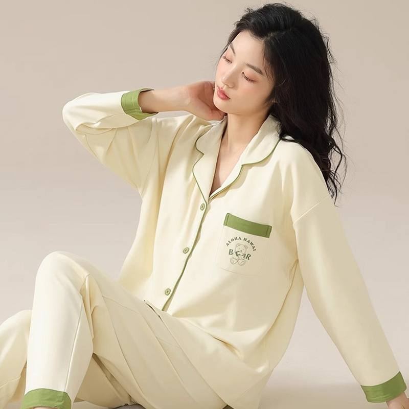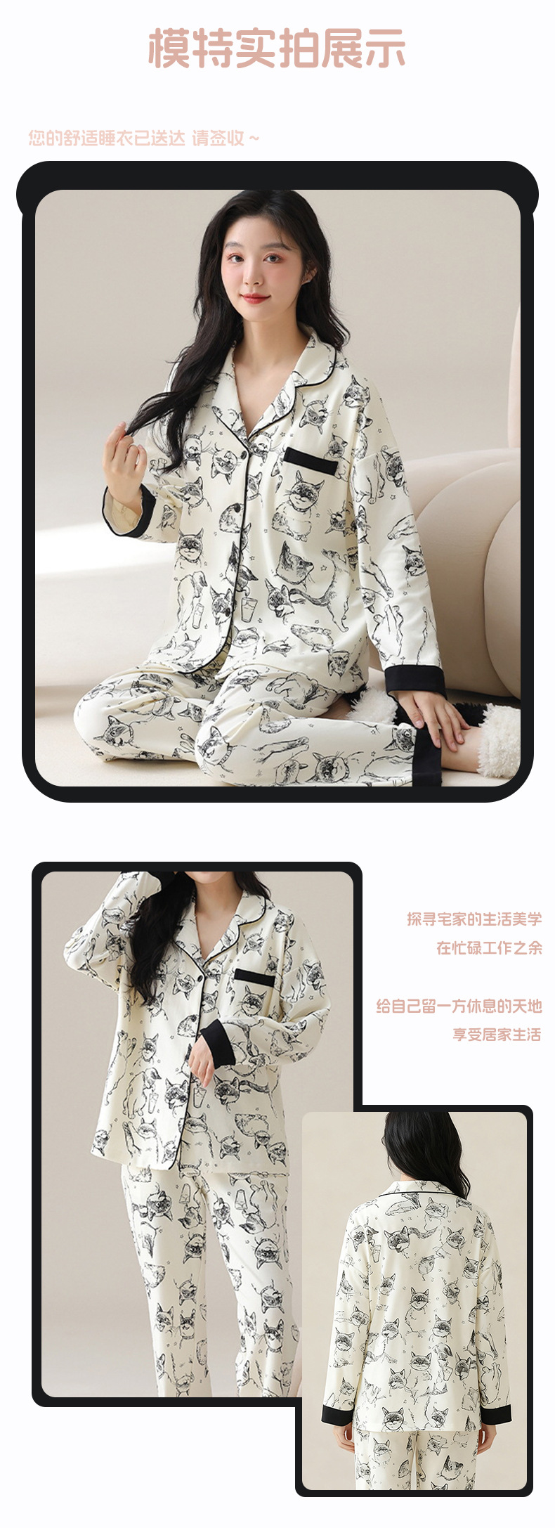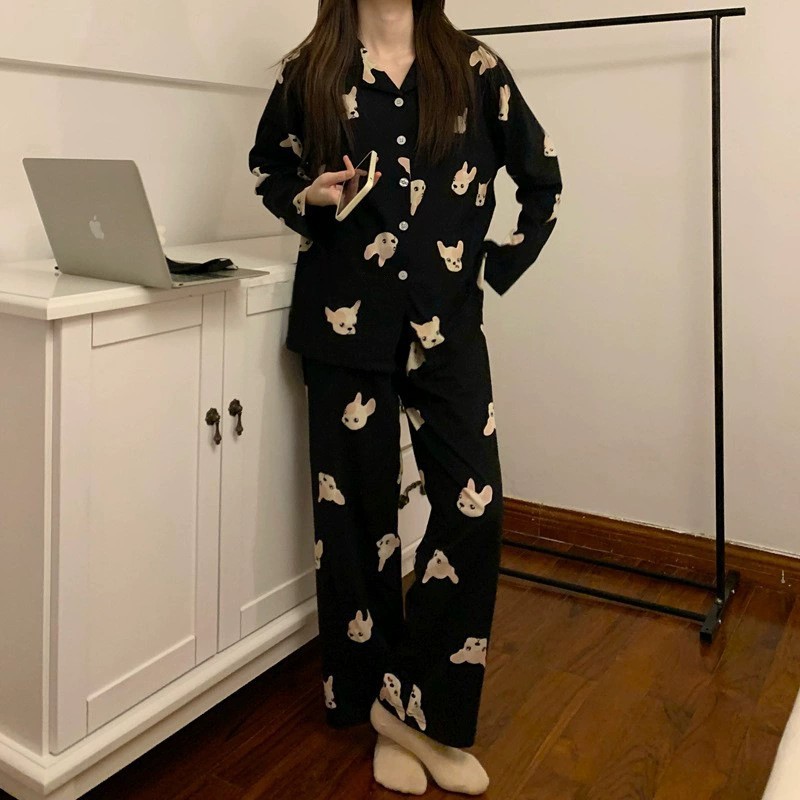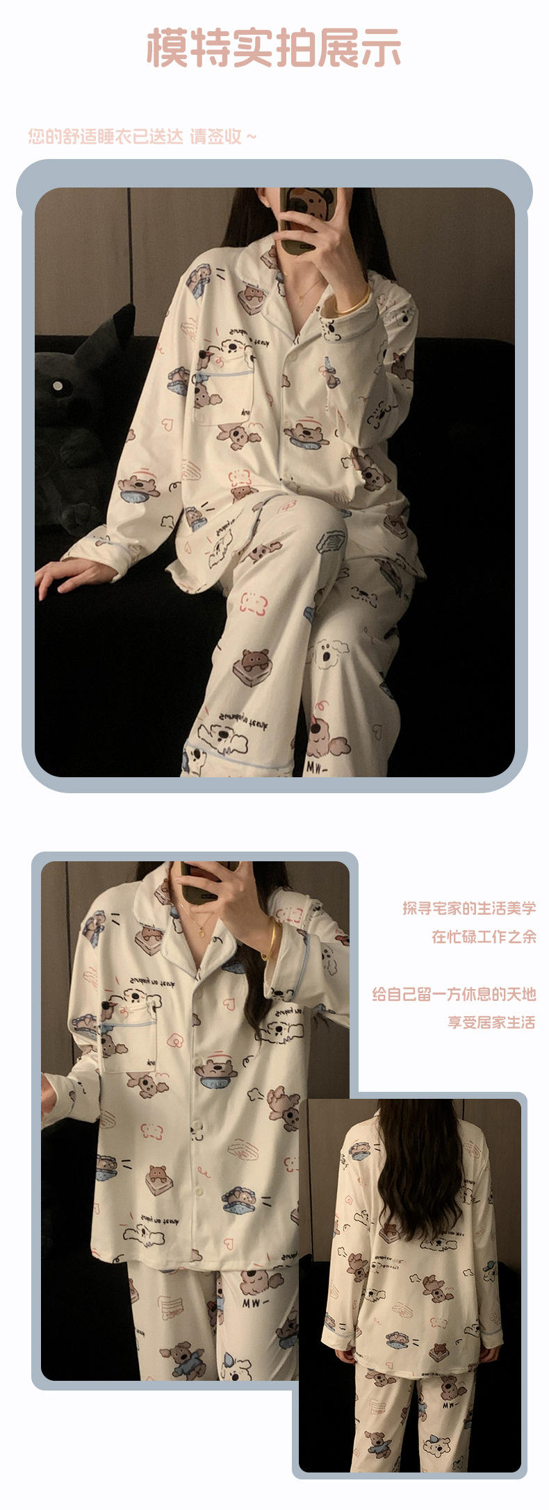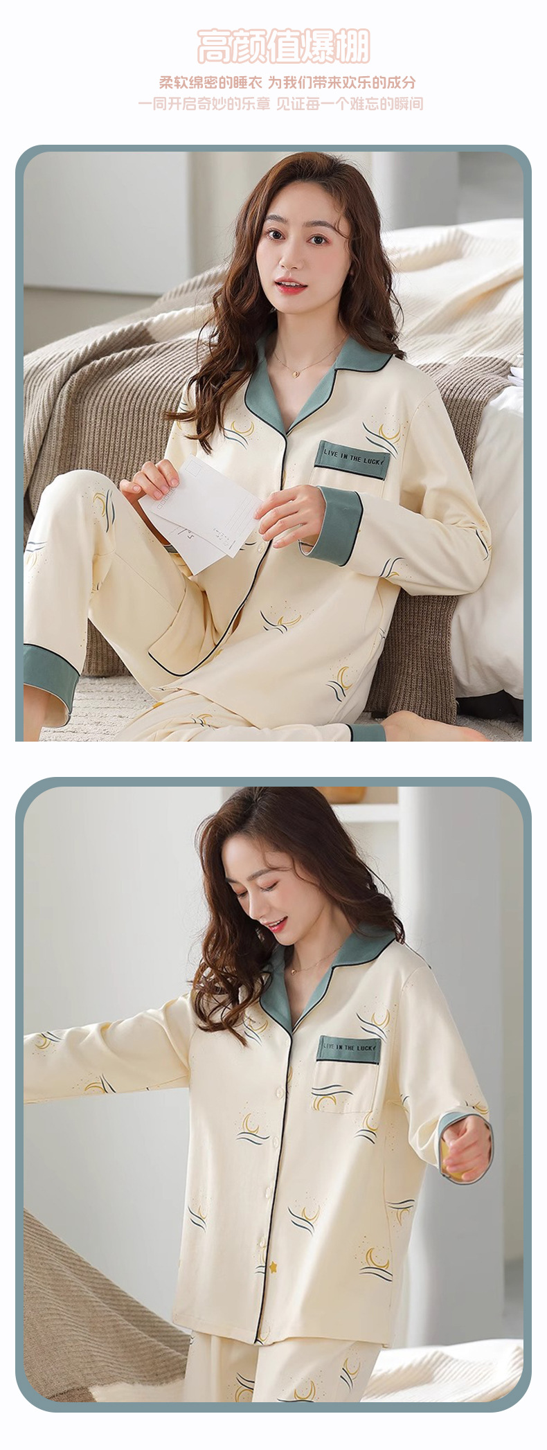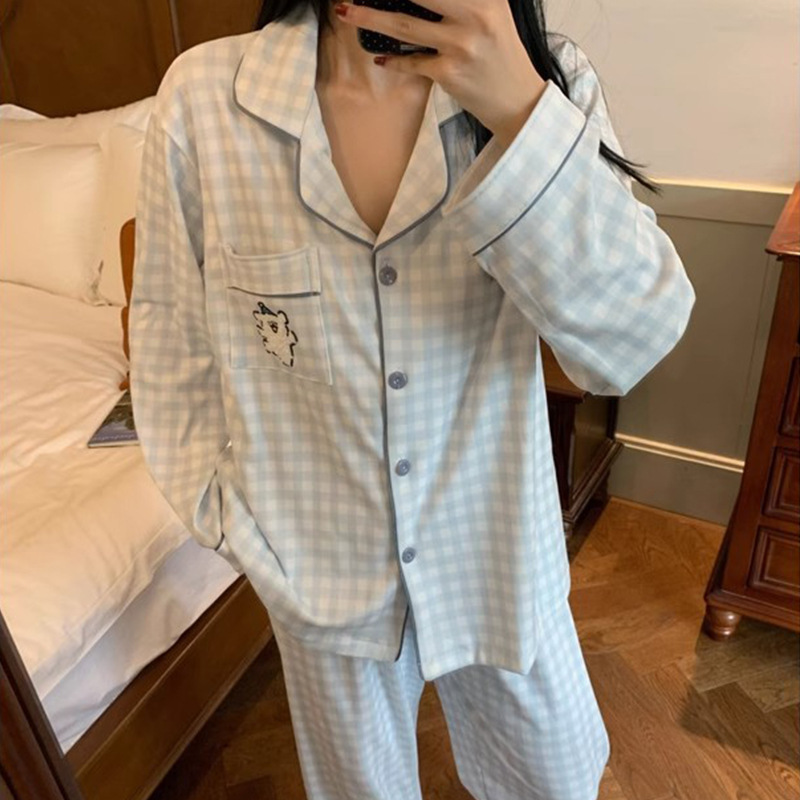 새로운 스타일 잠옷 여성 온라인 인기있는 봄과 가을 긴 소매 바지 면화 같은 시리즈 패션 홈 의류 간단한 외부 착용 세트스토어 가기