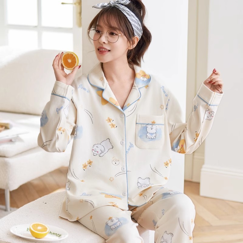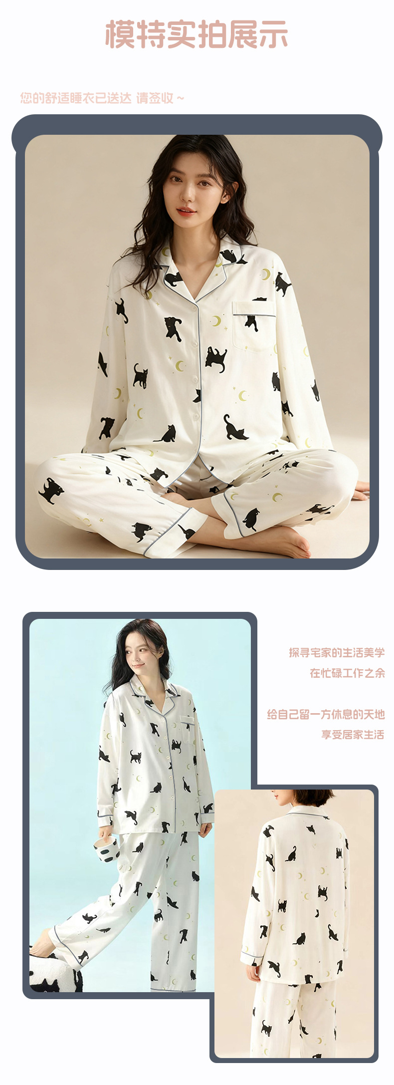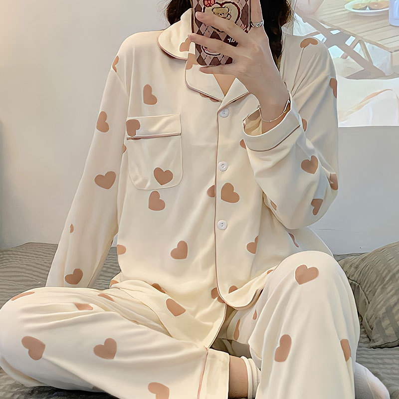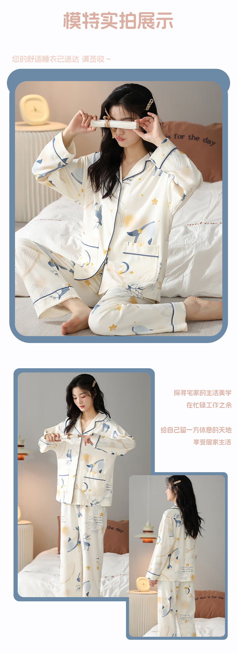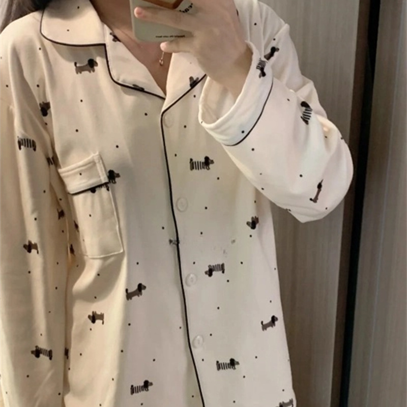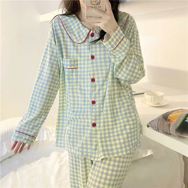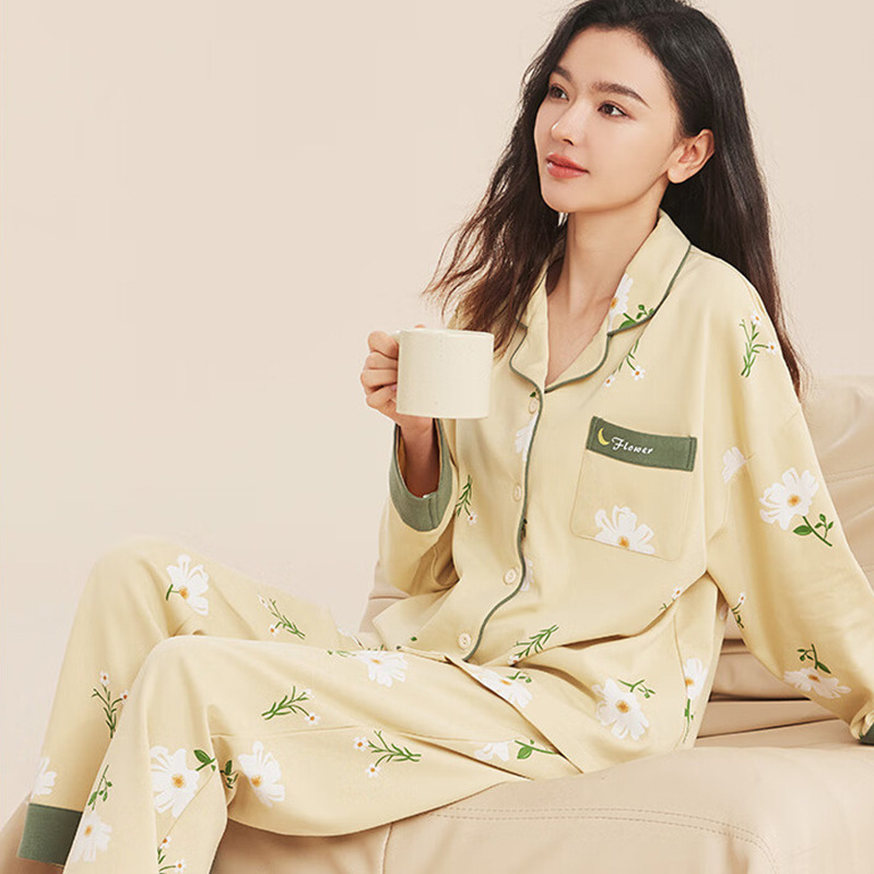 새로운 스타일 잠옷 여성 온라인 인기있는 봄과 가을 긴 소매 바지 면화 같은 시리즈 패션 홈 의류 간단한 외부 착용 세트스토어 가기