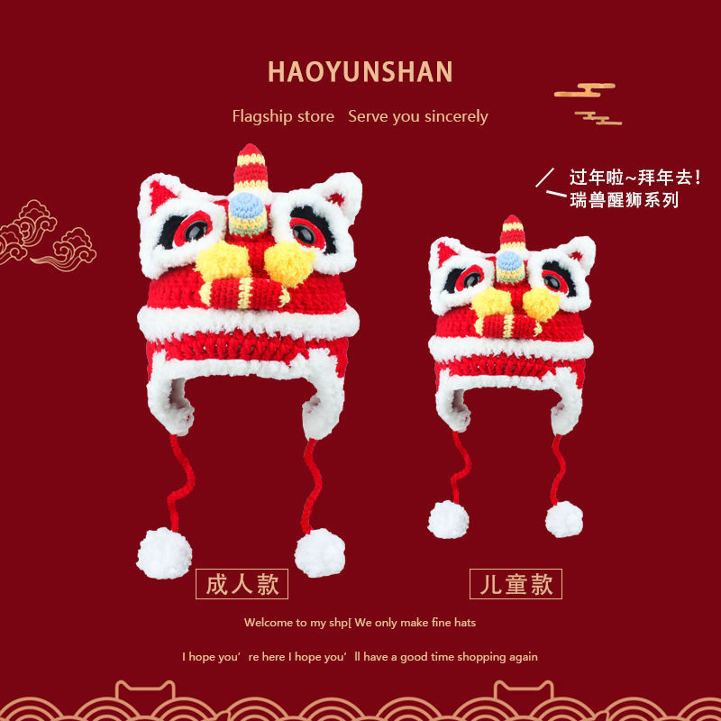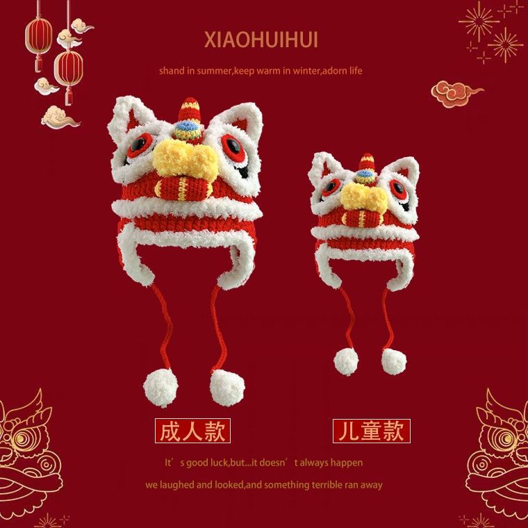 도매 새로운 스타일의 순수 수제 귀엽고 따뜻한 부모-자식 성인 호랑이 머리 모자, 중국 스타일의 모직 어린이 자수 아기 모자스토어 가기