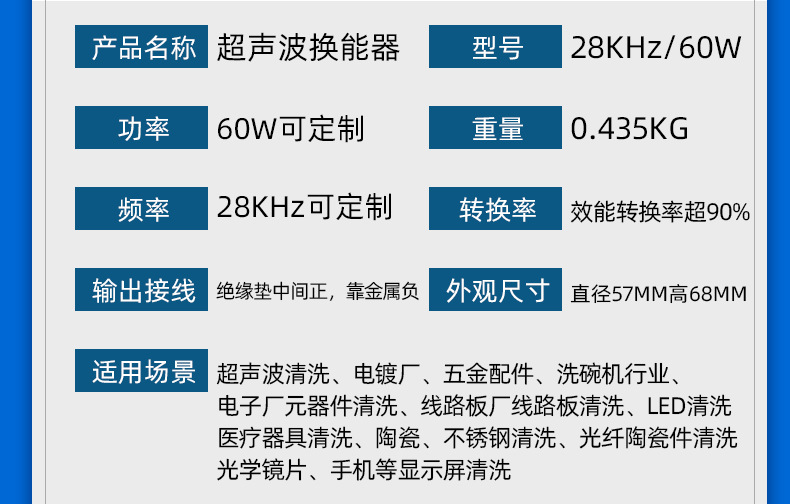 28KHZ60W 식기 세척 초음파 변환기 하드웨어 초음파 청소 기계 산업 충격 헤드 초음파 진동기