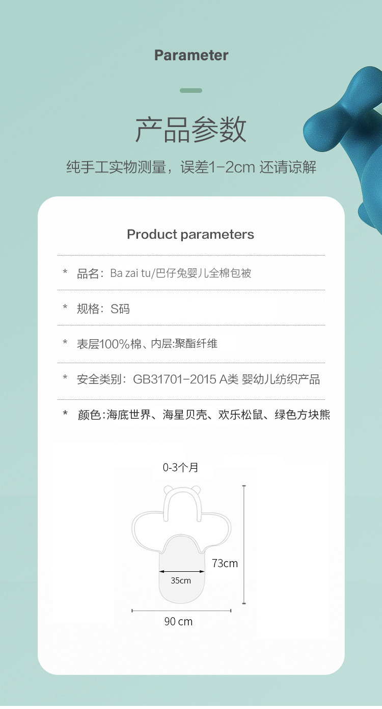 Baazai tu/Bazai 토끼 신생아 담요 신생아 아기 포대기 점프 방지 순수 코튼 가을, 겨울 아기 담요스토어 가기