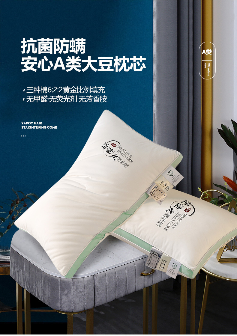 클래스 A 원면 대두 섬유 베개 도매 공장 호텔 슈퍼 소프트 베개 코어 홈 경추 보호 기숙사 단일 베개스토어 가기
