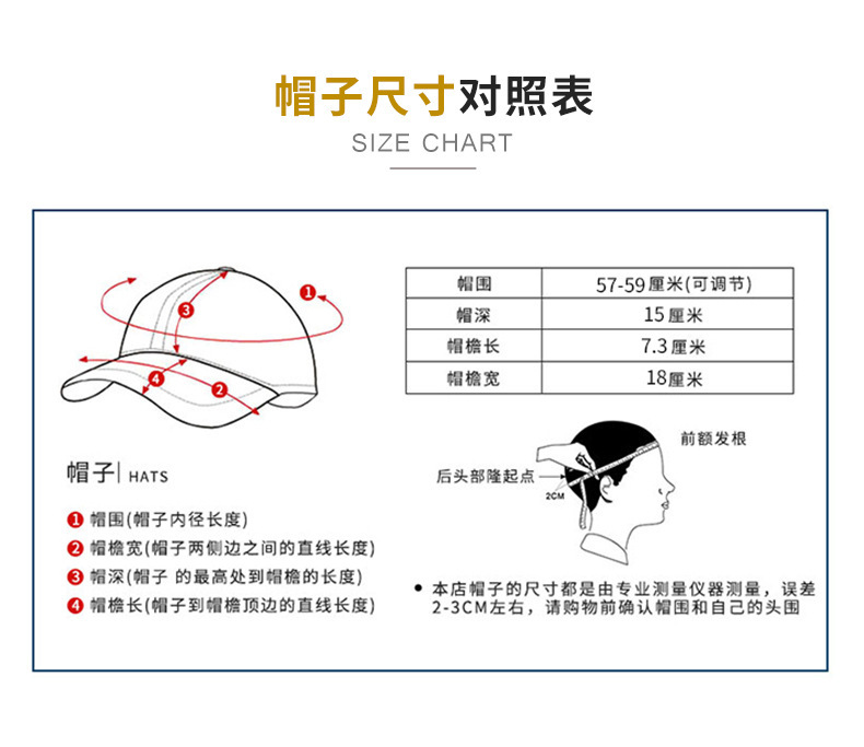 产品尺寸帽檐长7.3cm重 量100g