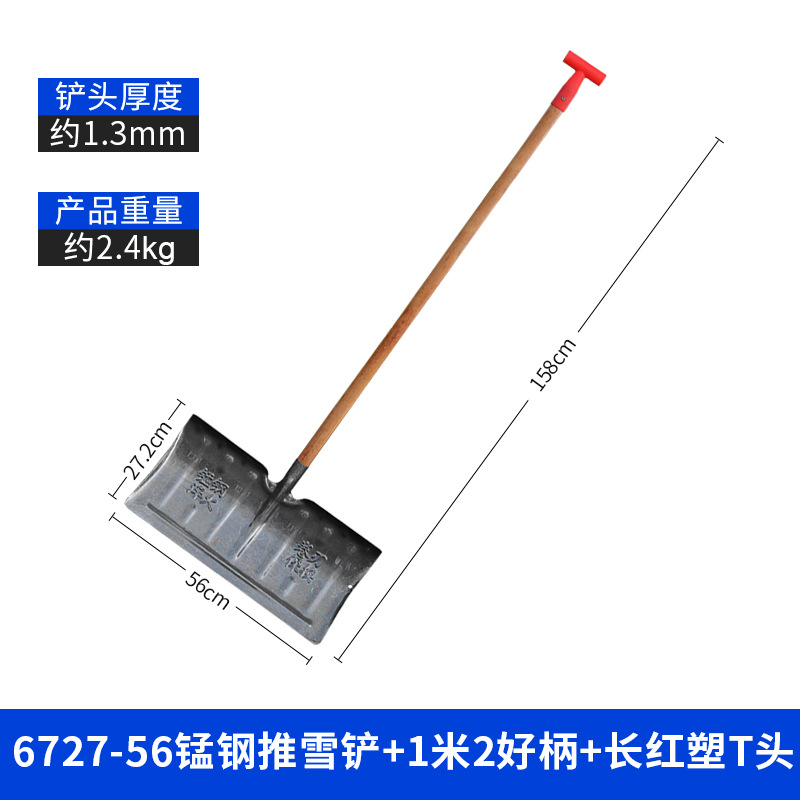 • 6727-56 망간강 제설 삽 + 1.2m 고급 손잡이 + 긴 빨간색 플라스틱 T자형 헤드