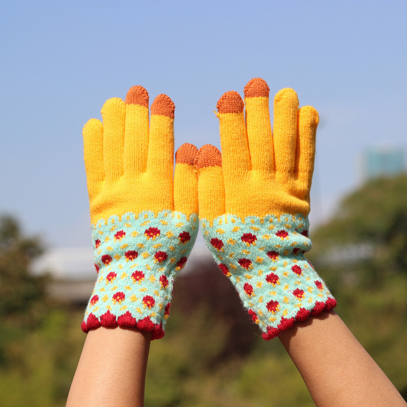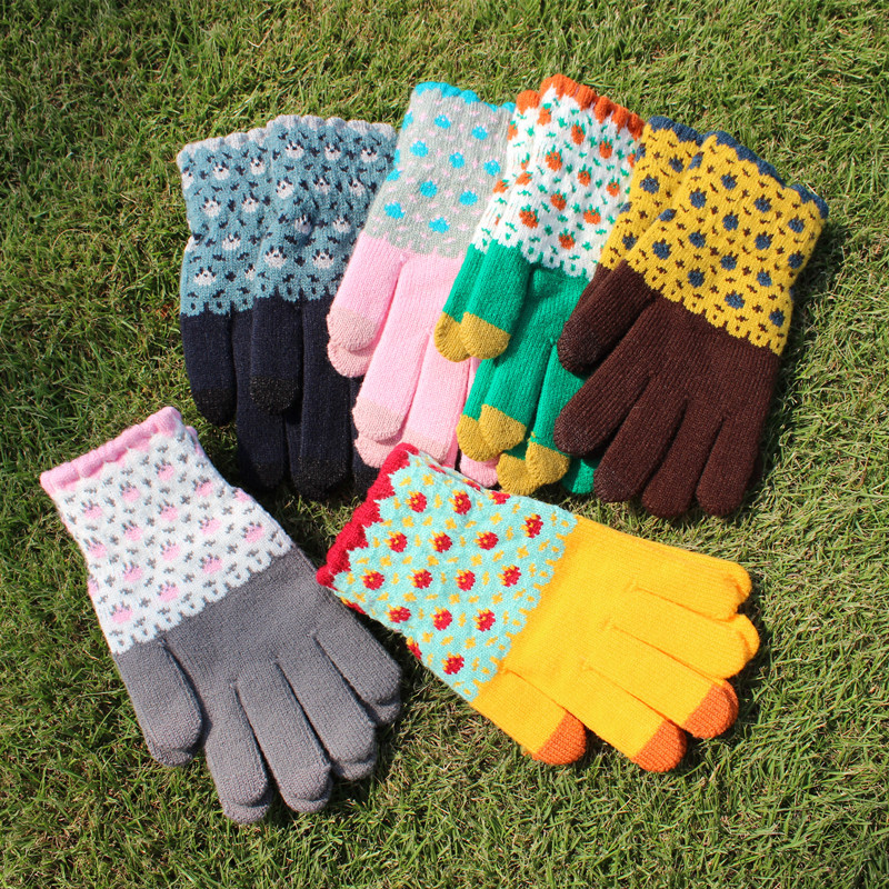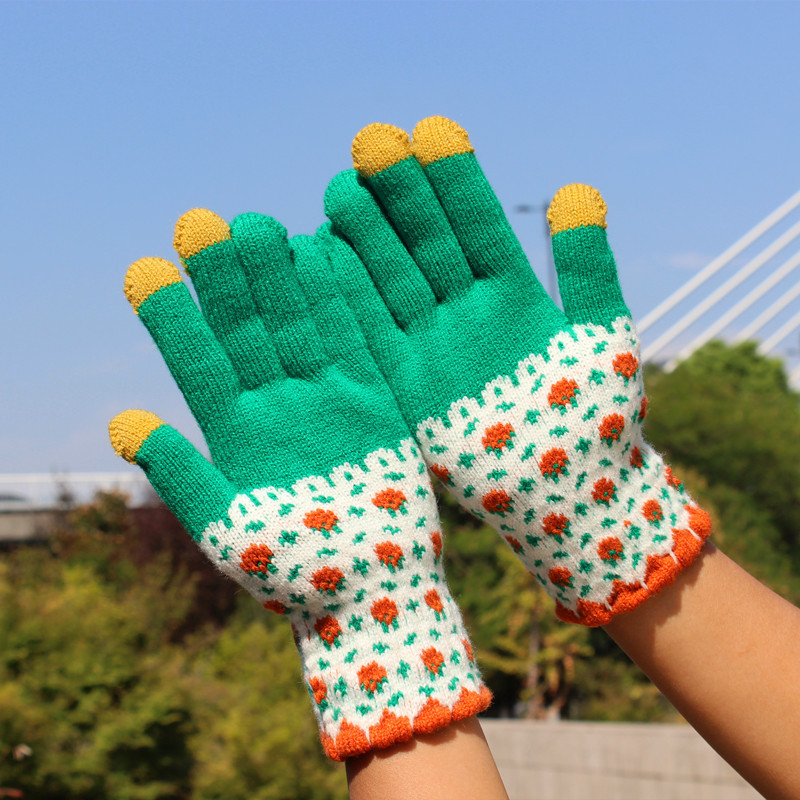 겨울 여성용 두꺼운 플리스 안감 보온 니트 장갑 인기 자카드 터치스크린 보온 방한 자전거 장갑스토어 가기