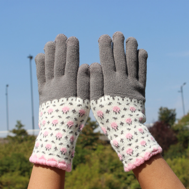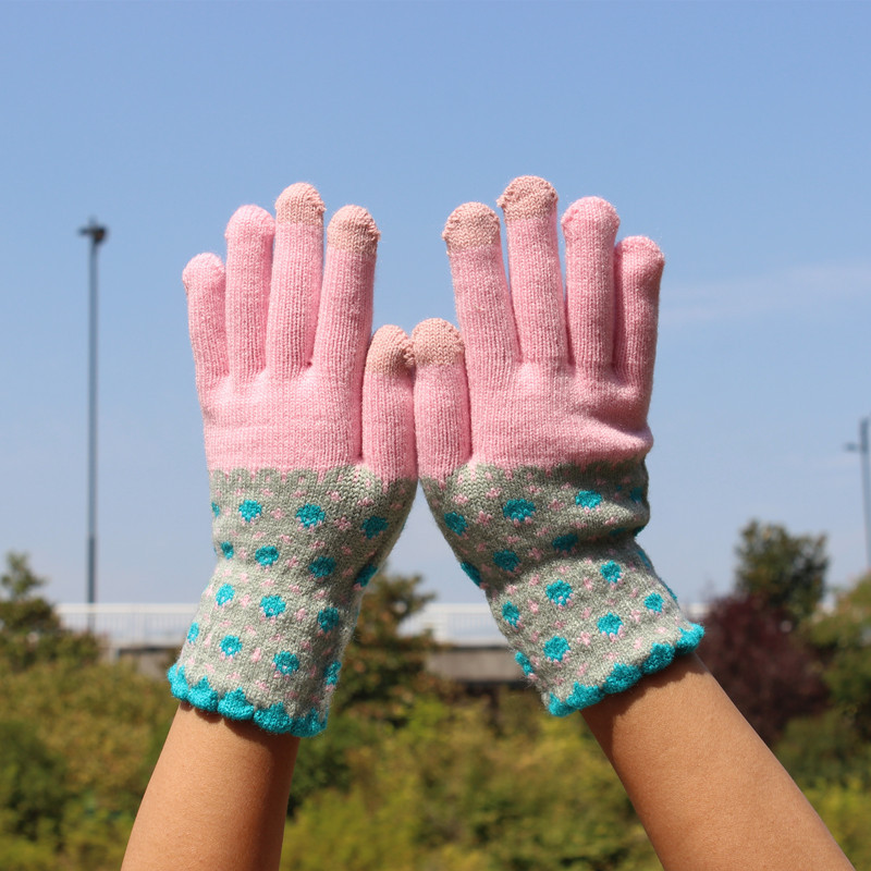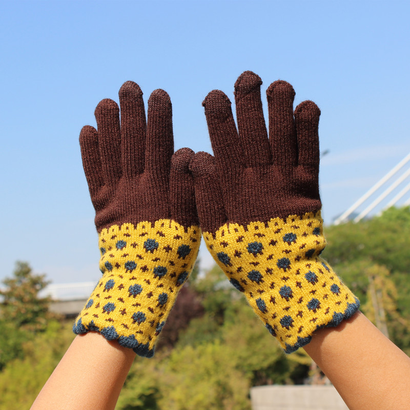 겨울 여성용 두꺼운 플리스 안감 보온 니트 장갑 인기 자카드 터치스크린 보온 방한 자전거 장갑