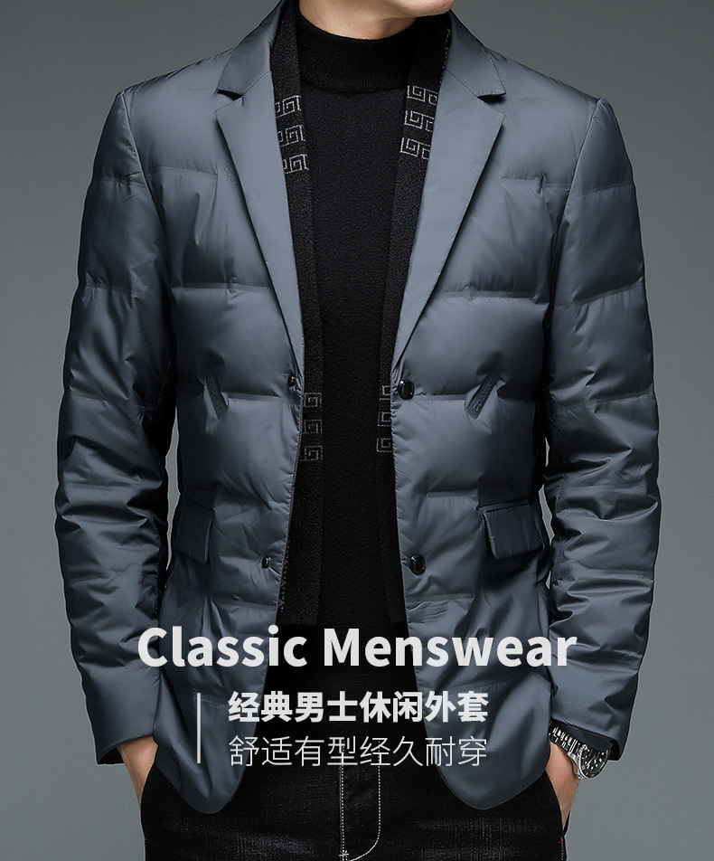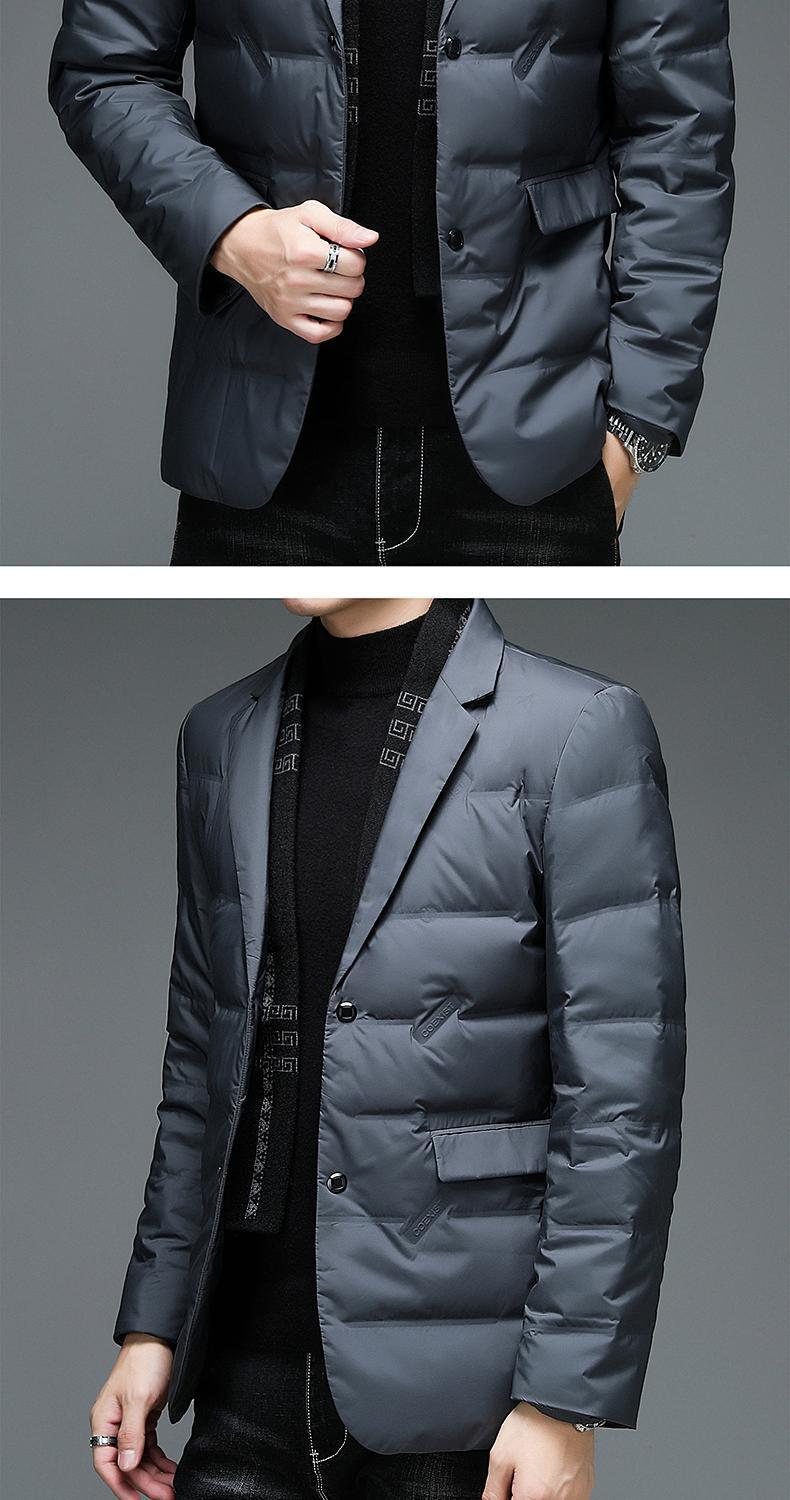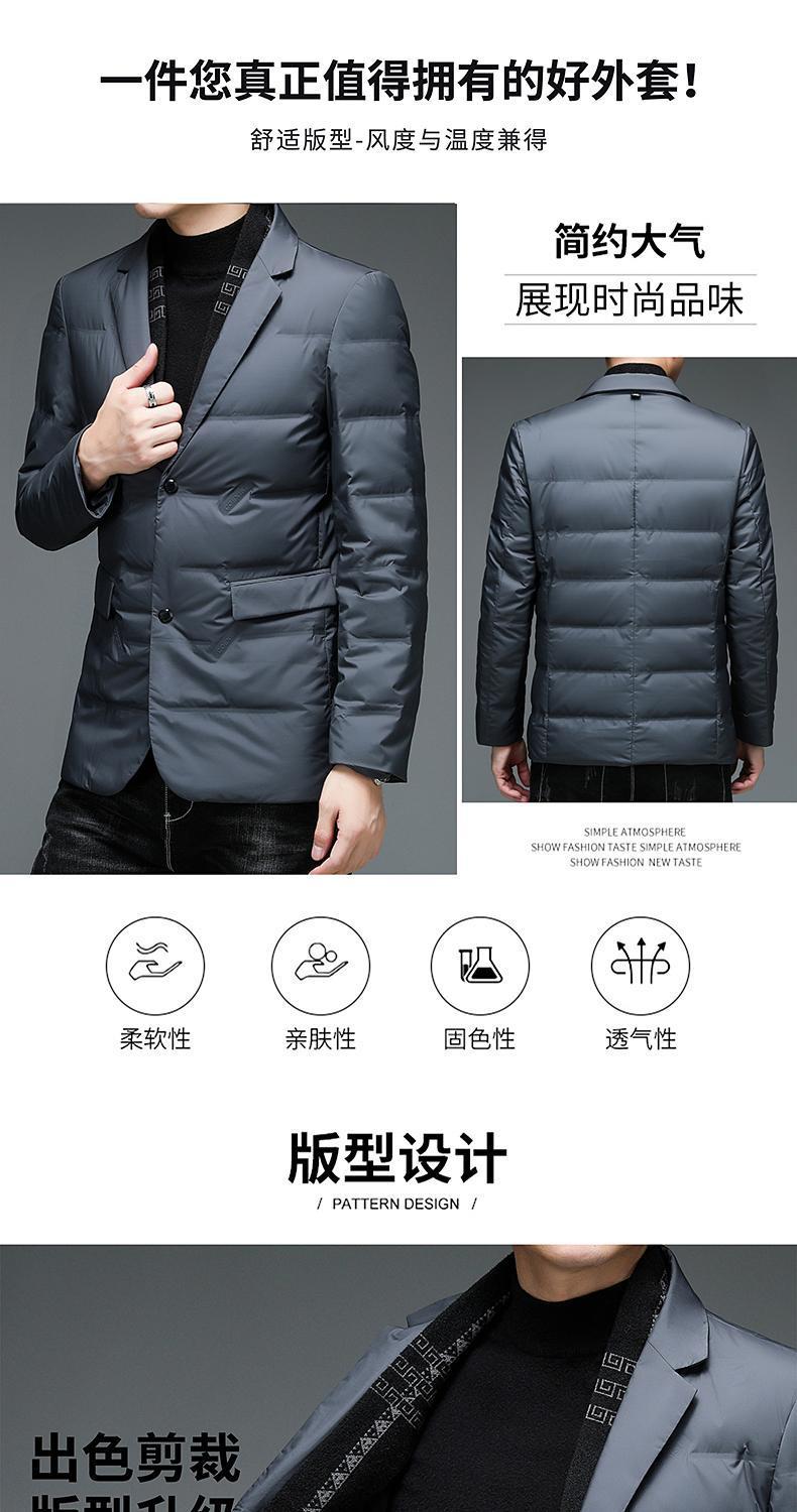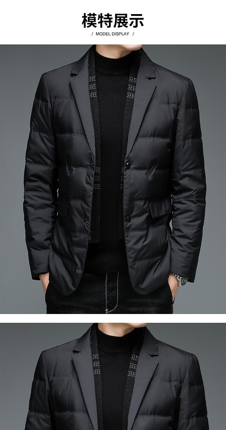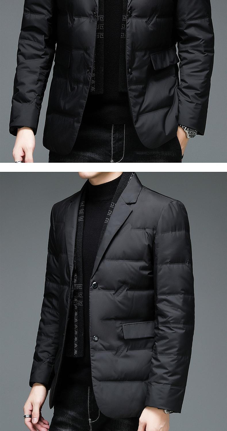 다수의 SF 특급 배송 남성용 슬림핏 정장 스타일 화이트 덕다운 재킷, 탈부착 가능한 스카프 칼라가 있는 패셔너블한 코트