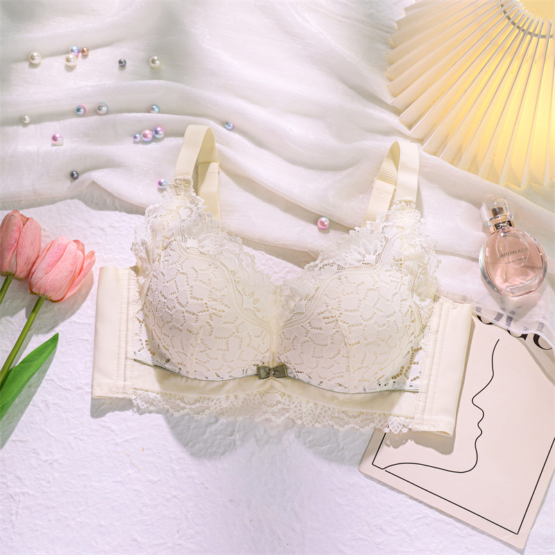 비 자기 속옷 여성의 작은 가슴 큰 두꺼운 컵 통기성 레이스 브래지어 스틸 링 상부 지원 푸시 업 조절 브래지어