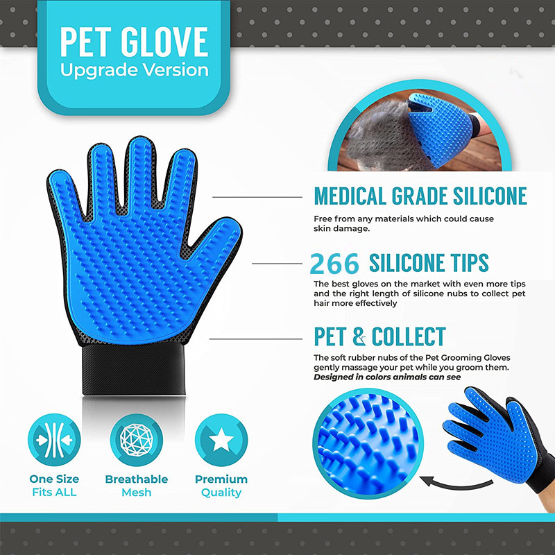 266钉宠物清洁用品除毛器去毛刷子撸猫洗澡按摩梳宠物手套亚马逊