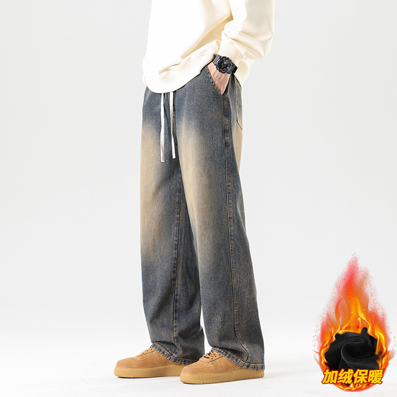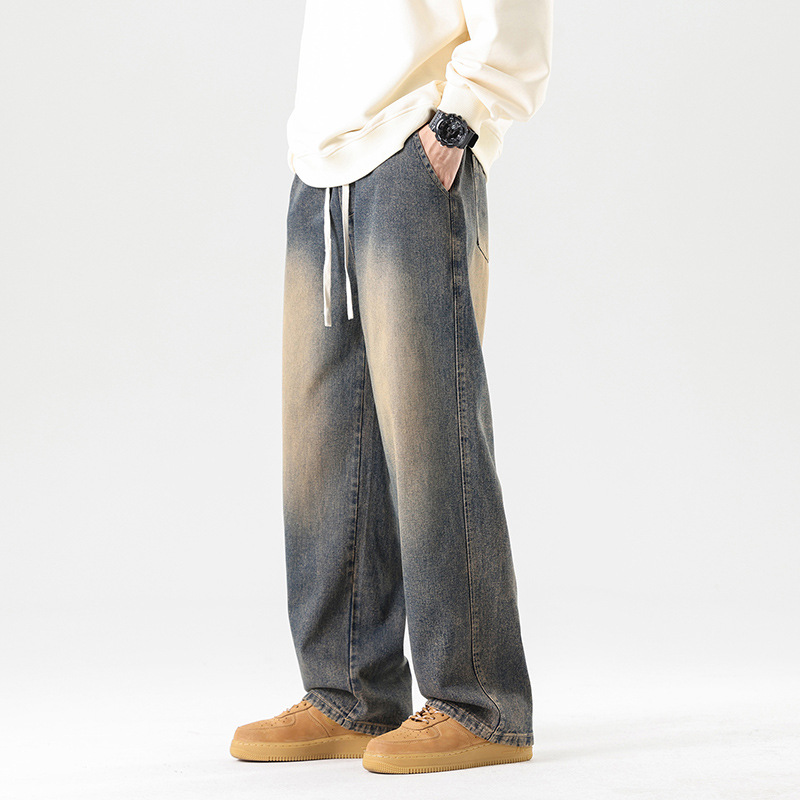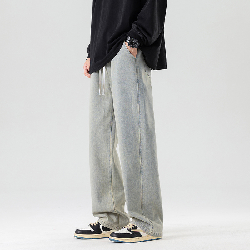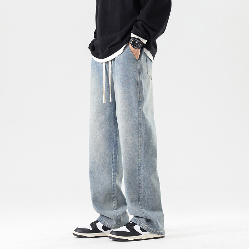 남성용 청바지 가을 겨울 신상 2025 미국 스타일 트렌디 브랜드 와이드 레그 남성용 다용도 루즈핏 스트레이트 캐주얼 롱 팬츠스토어 가기