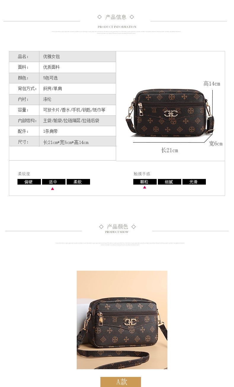 광저우 봄과 여름 여성의 한국 스타일 캐주얼 가방 싱글 숄더 크로스 바디 백 어머니 가방 동전 지갑 휴대 전화 가방 부드러운 가죽 유니버설 백