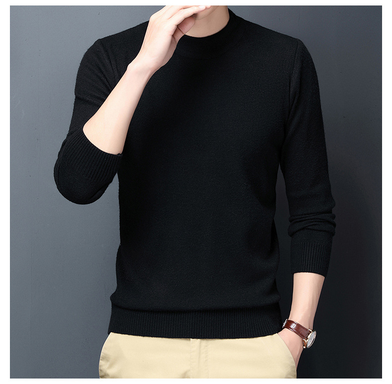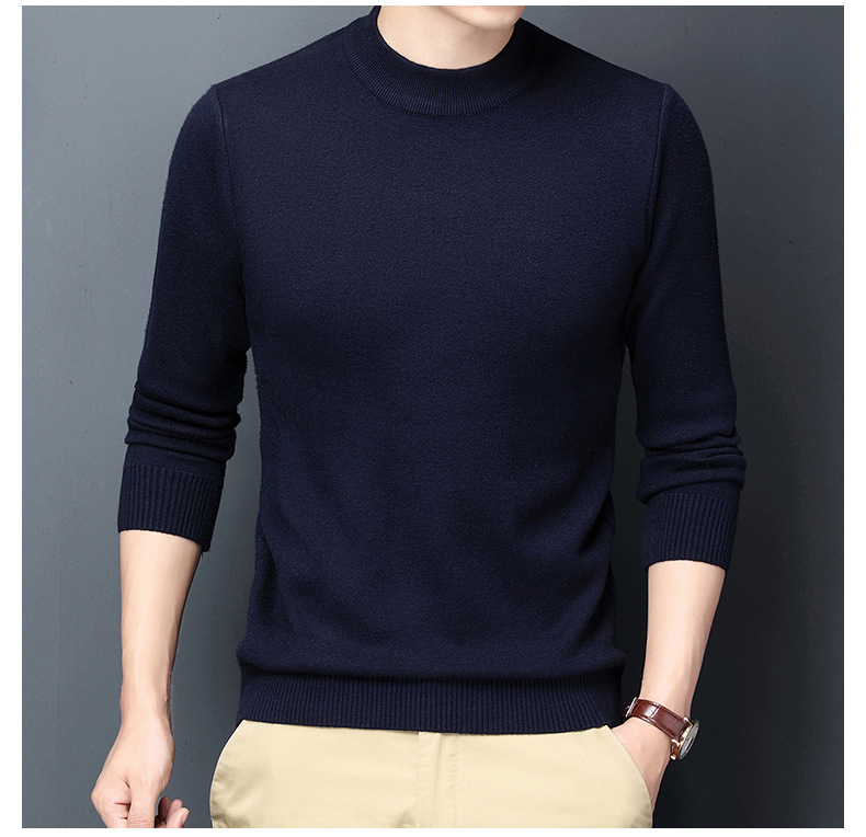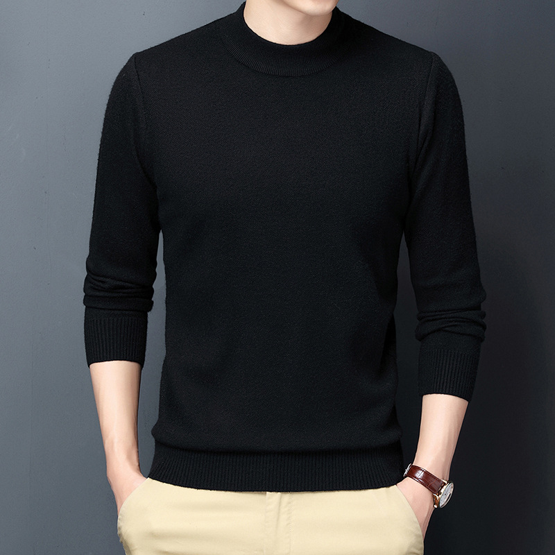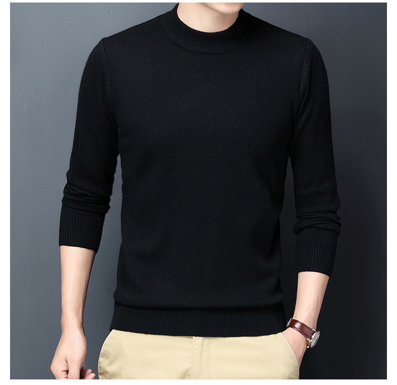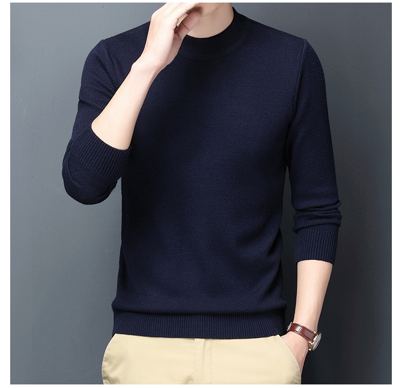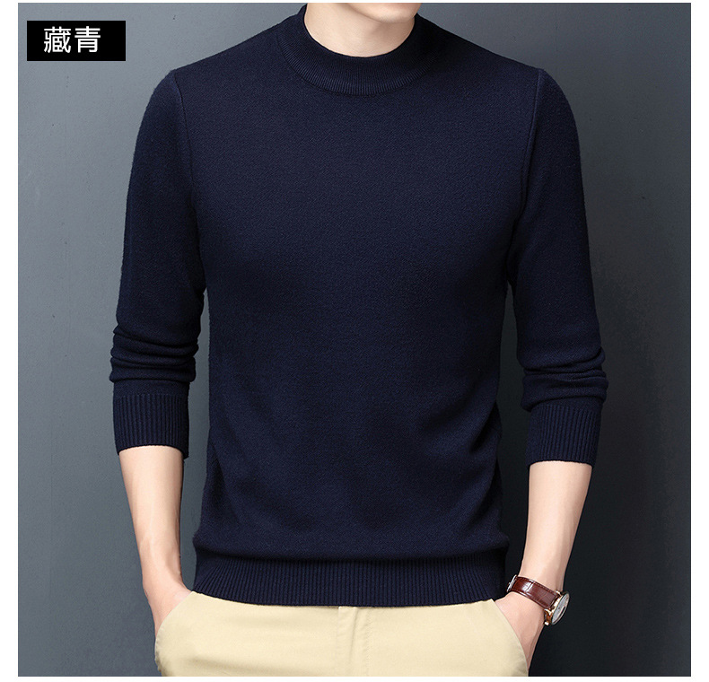 남성용 니트웨어 가을과 겨울 새로운 퓨어 컬러 겨울 따뜻한 라운드 넥 스웨터 남성용 바지 셔츠 아빠 패션 브랜드스토어 가기