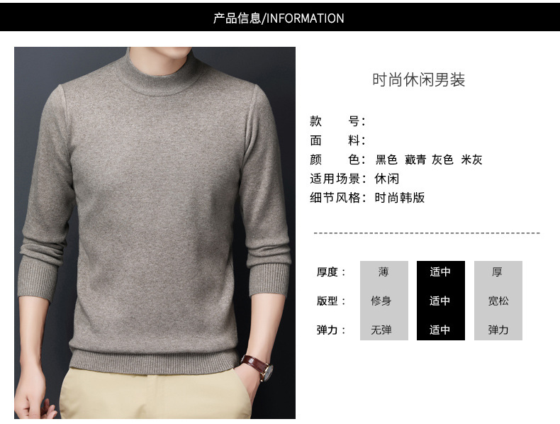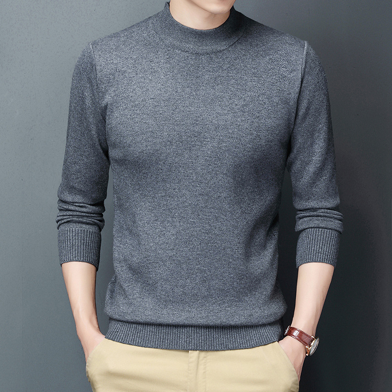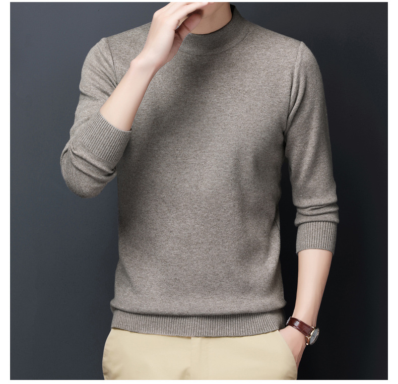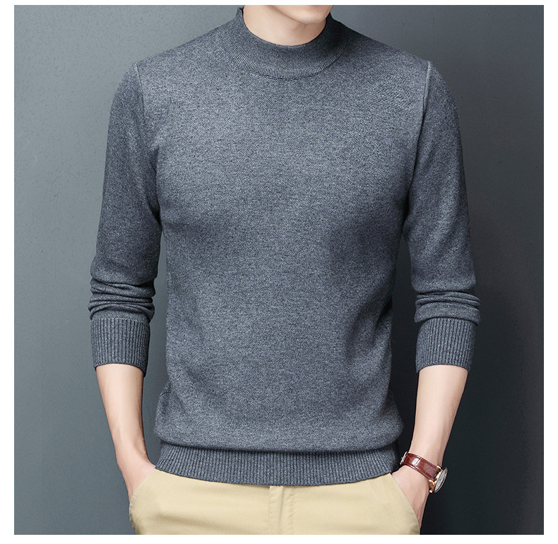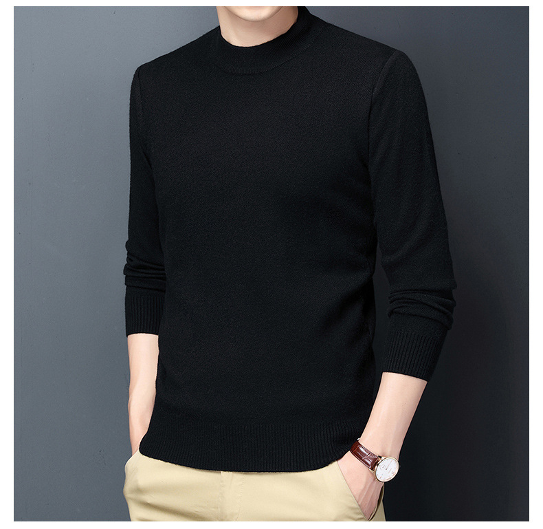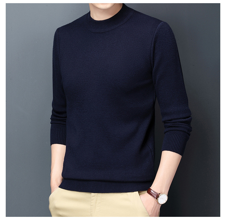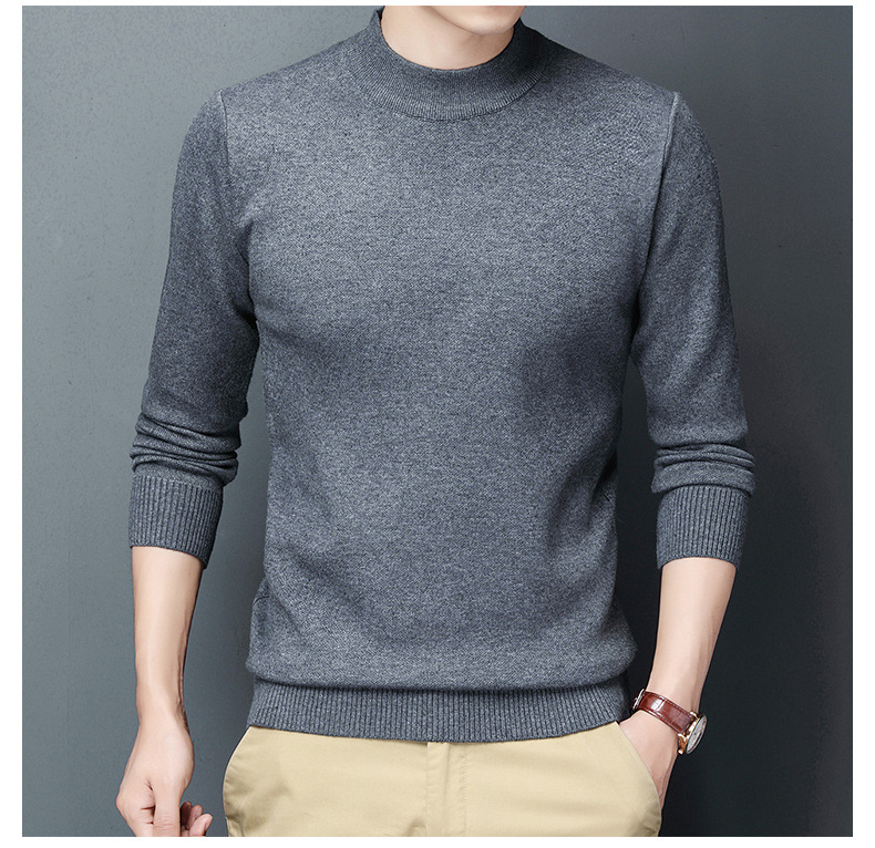 남성용 니트웨어 가을과 겨울 새로운 퓨어 컬러 겨울 따뜻한 라운드 넥 스웨터 남성용 바지 셔츠 아빠 패션 브랜드스토어 가기