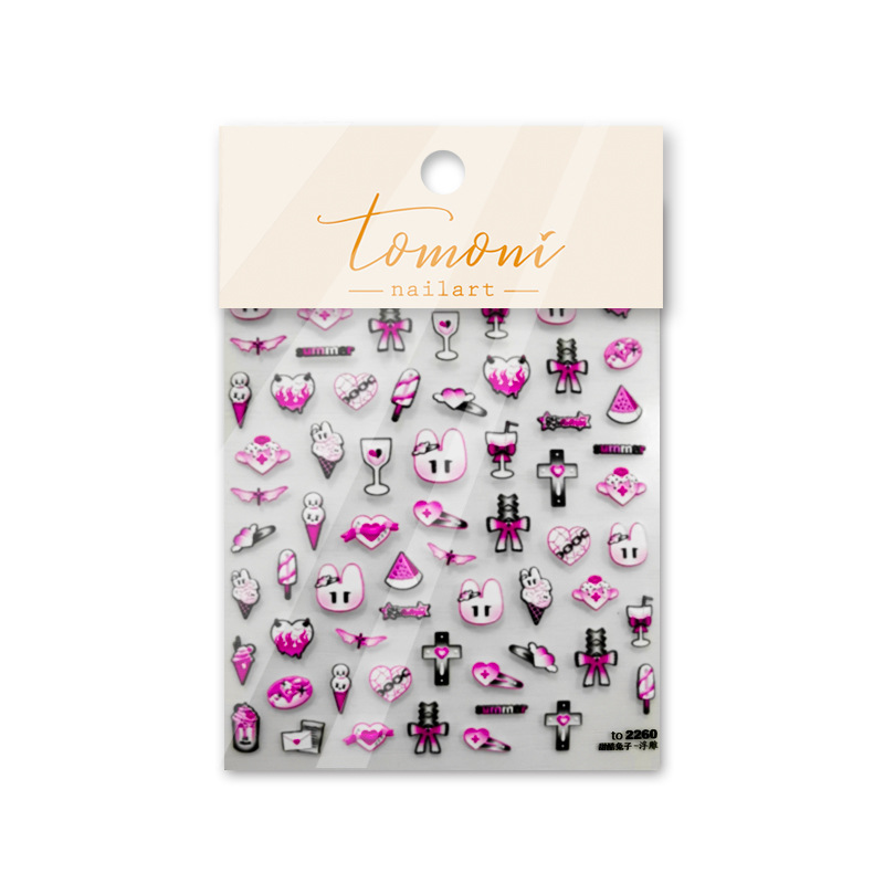 토모니 구호 네일 아트 스티커 폭발 일본 복고풍 5D 네일 스티커 달콤한 멋진 토끼 토끼 네일 아트 보석 도매