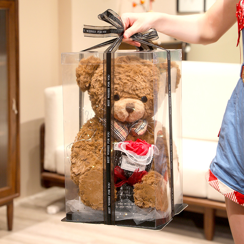 • 투명 선물 상자 + 장미 꽃다발 + 전구 스트링 + 명절 카드