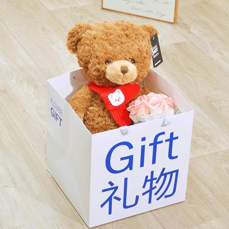 • 곰돌이 머플러 + 선물용 쇼핑백 + 블루 샹스 플라워 부케