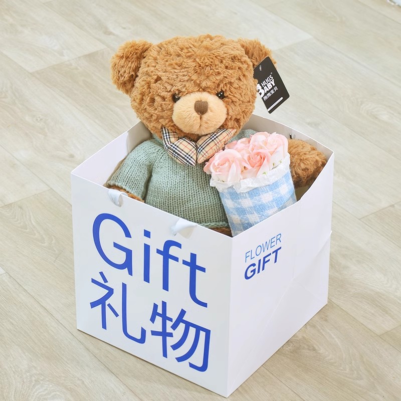 • 회색 스웨터 클레어 베어 + 선물 핸드백 + 블루 향수 꽃다발