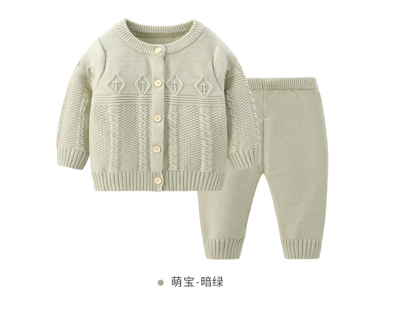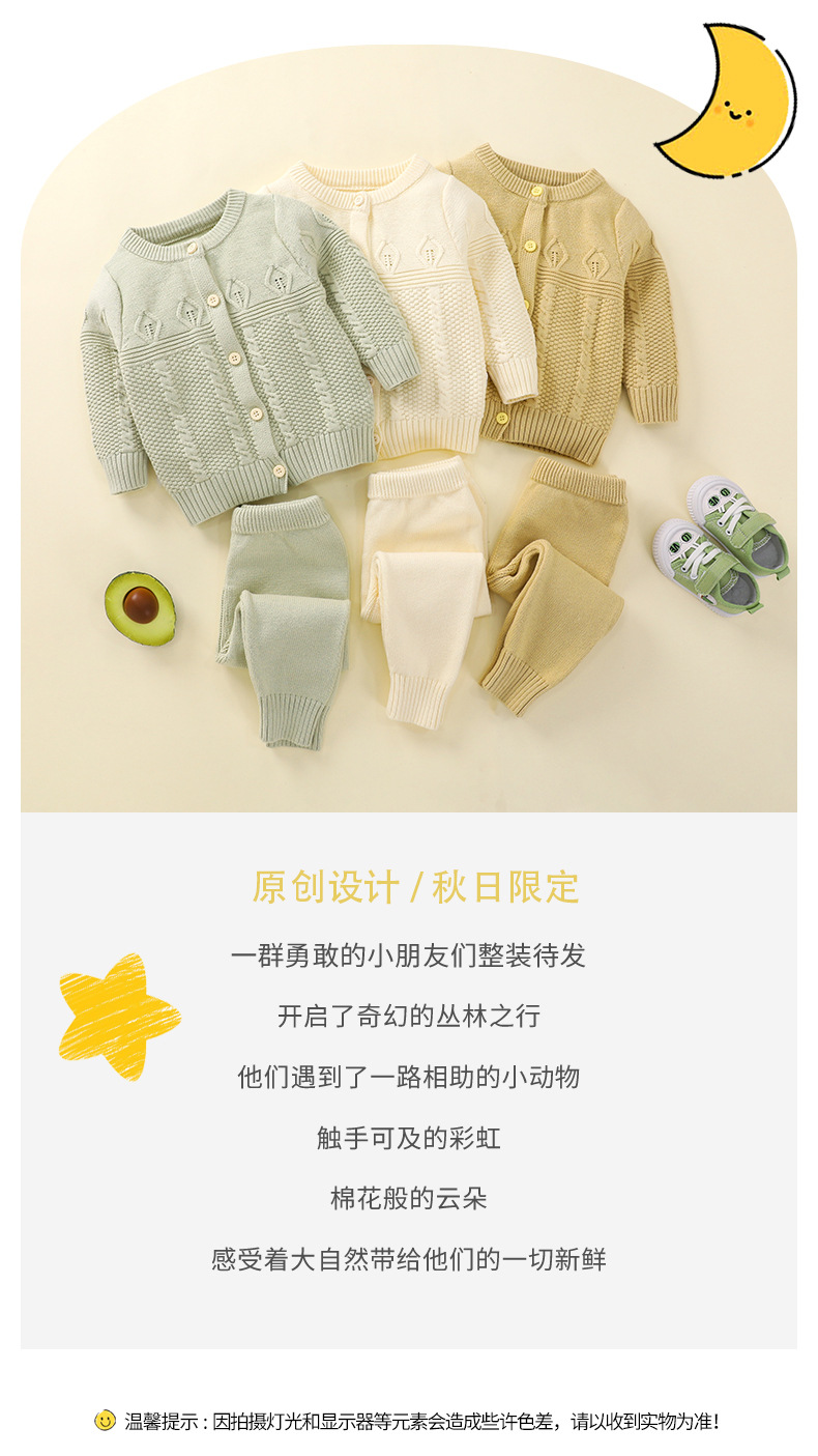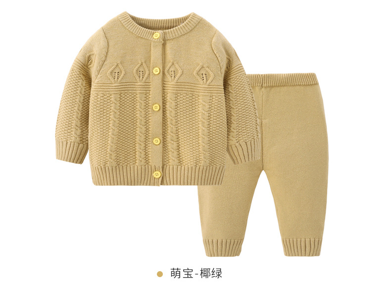 아기 스웨터 가을 신상 세트 코트 따뜻한 분리형 봄 가을 아기 스웨터 단색 라운드넥 가디건 소매