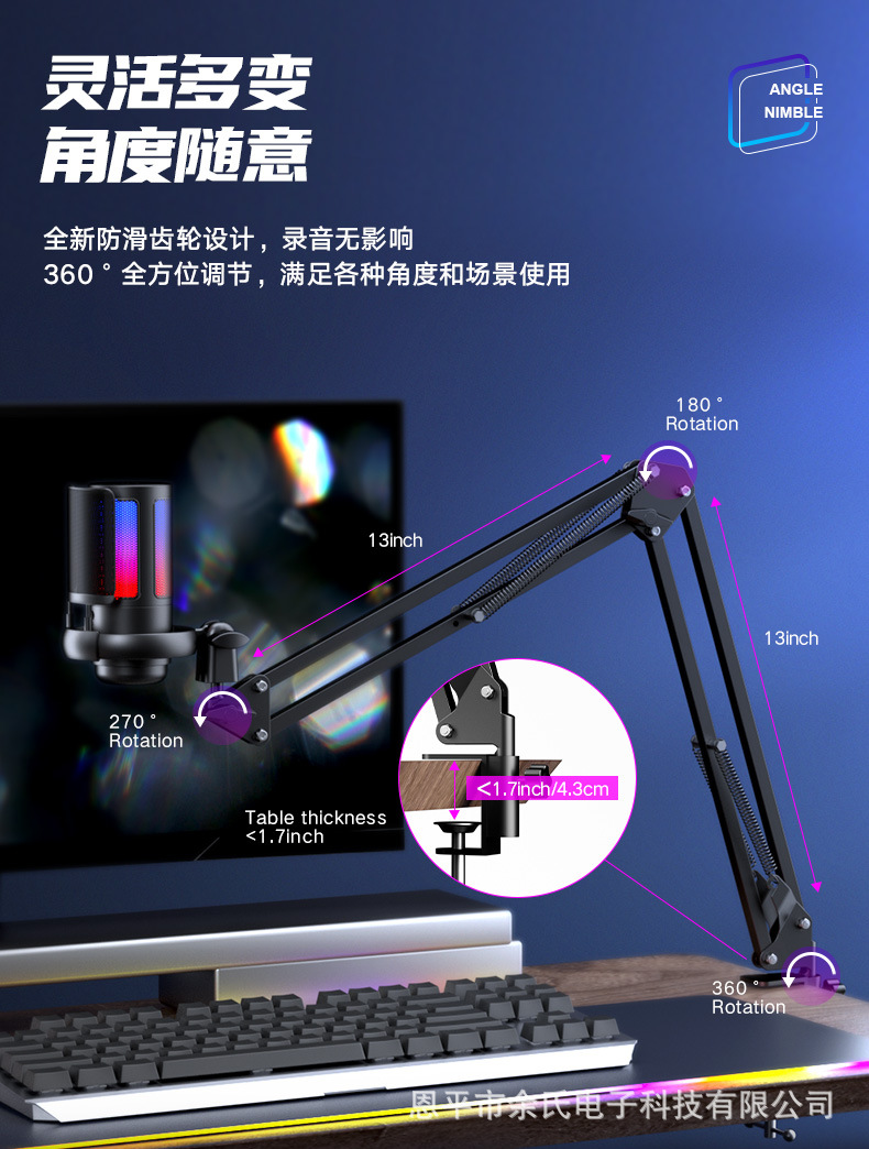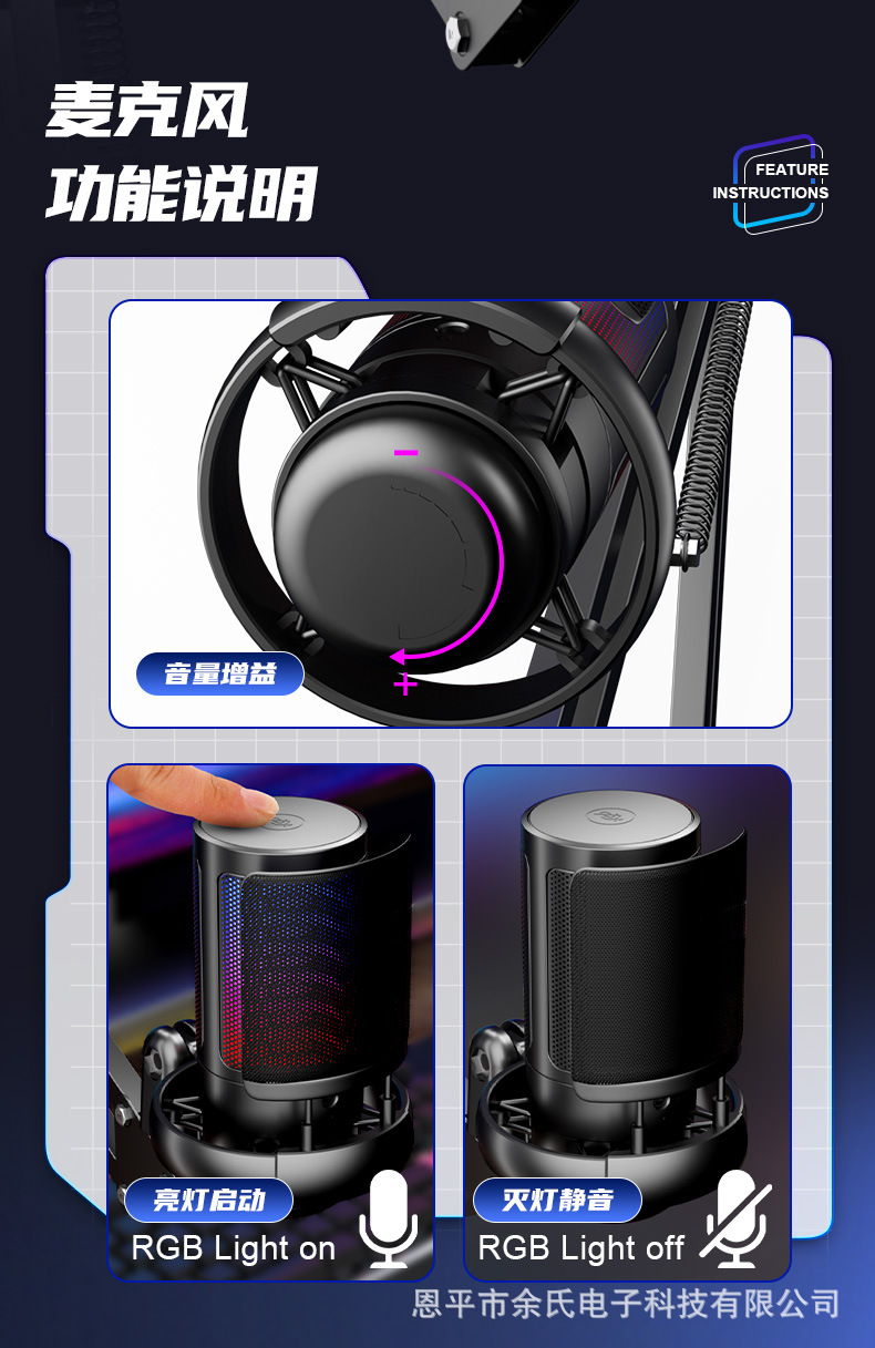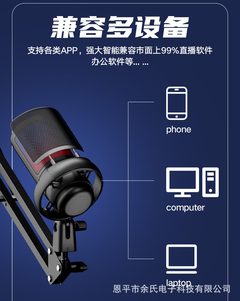 크로스보더 인기상품 ME6S 게임용 마이크 USB 마이크 RGB 라이브 방송 콘덴서 마이크 노래용 마이크