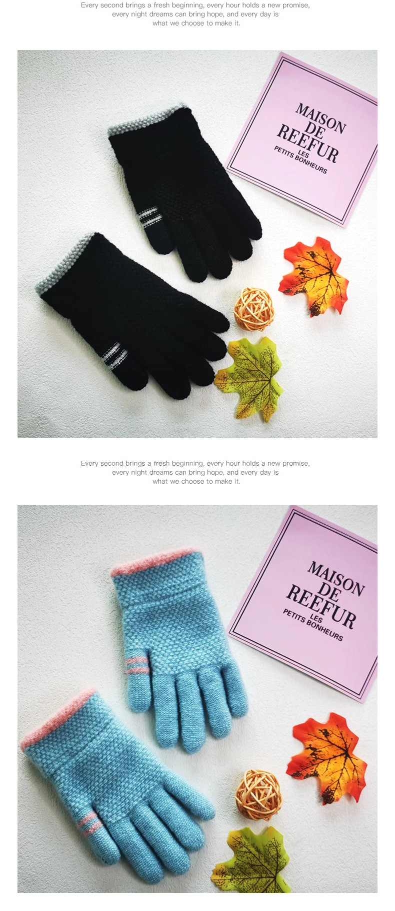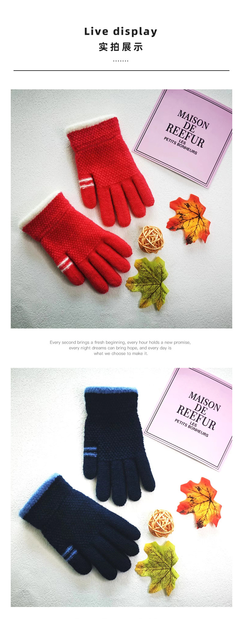 공장 어린이 겨울 남성과 여성 학생 기모 두꺼운 방한 따뜻한 니트 자카드 캐시미어 울 장갑