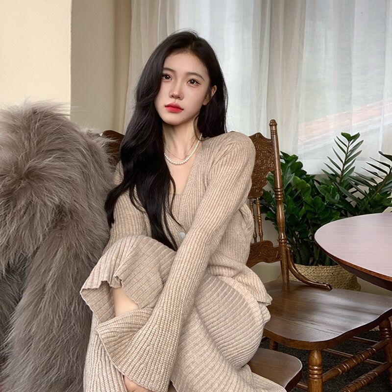 콜드 스타일 여성의 하이 엔드 원피스 여성의 부드러운 샤넬 스타일 스웨터 니트 가디건 프렌치 슬링 원피스