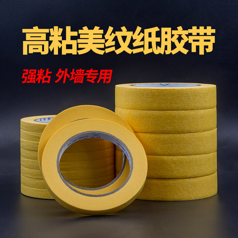 • 외벽 강한 접착 짙은 노란색 마스킹 종이 테이프; 너비 3.5cm * 길이 50 m [전체 상자 64 롤]