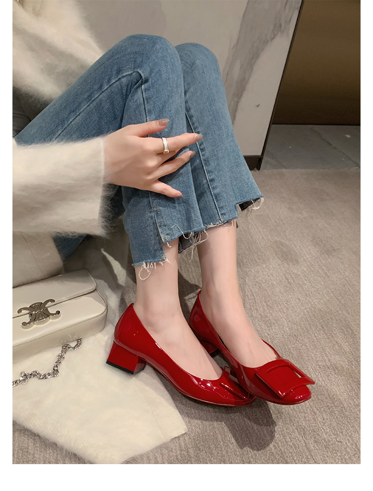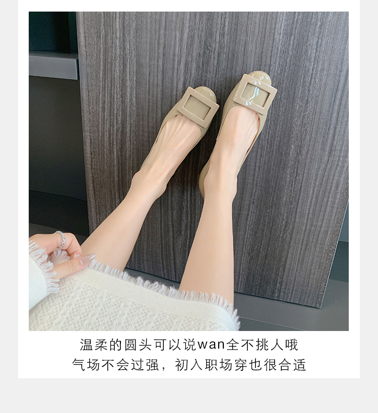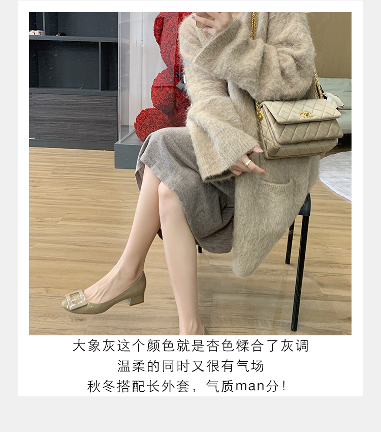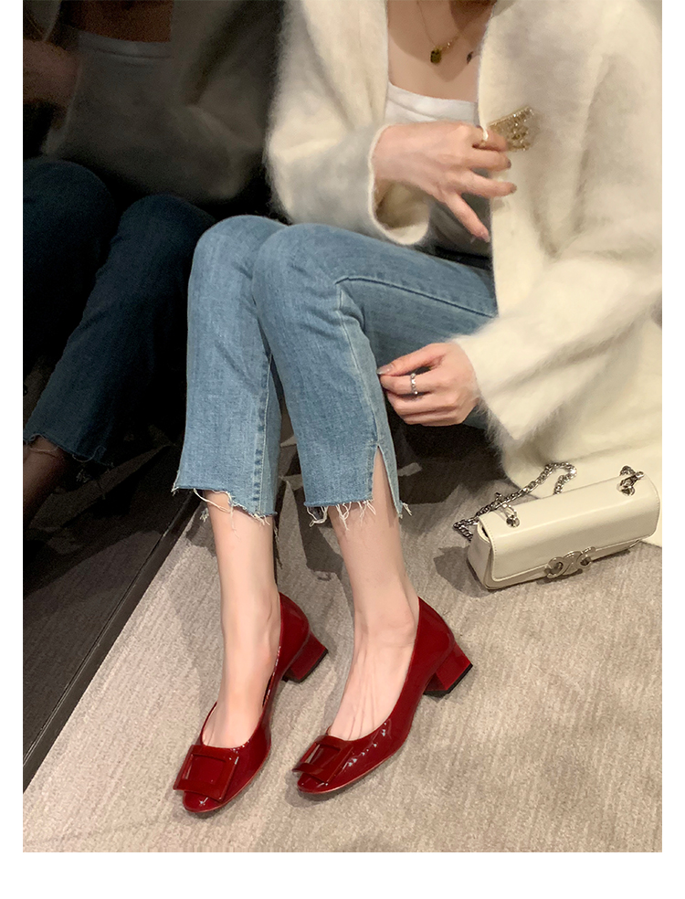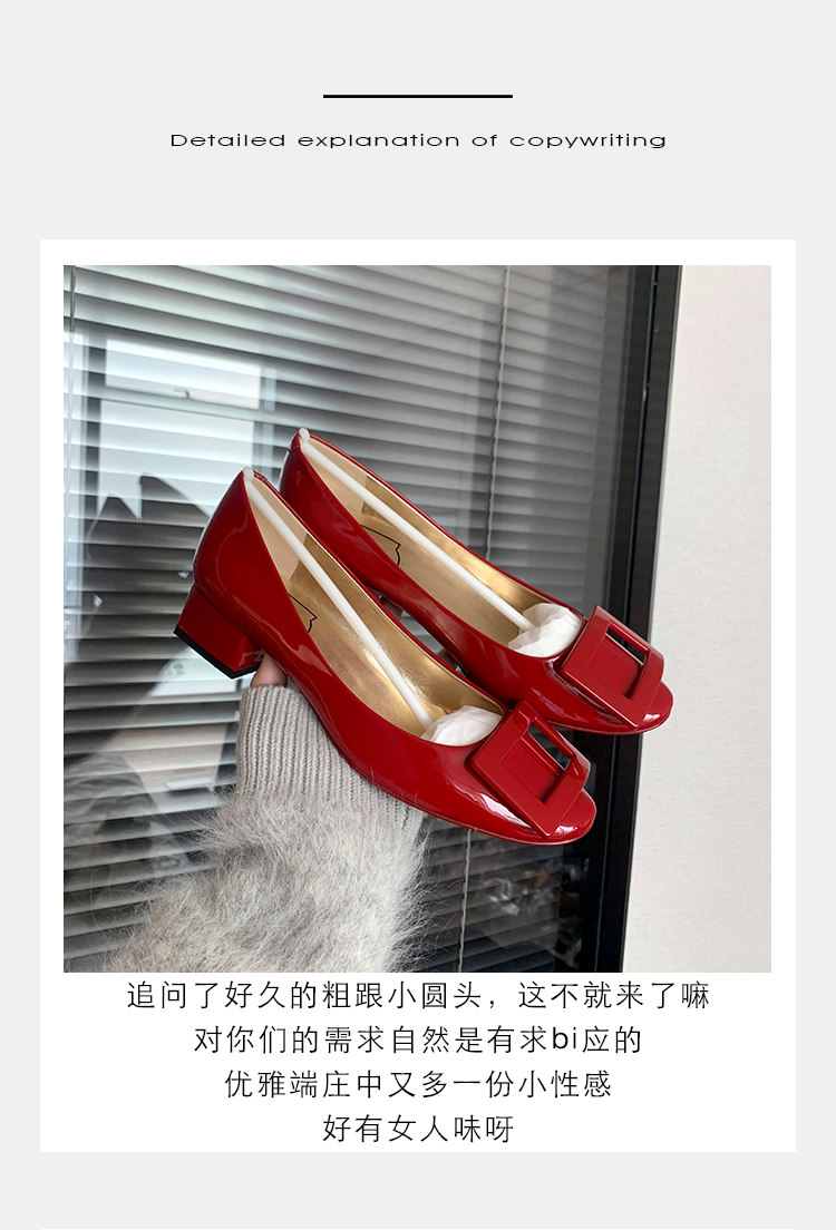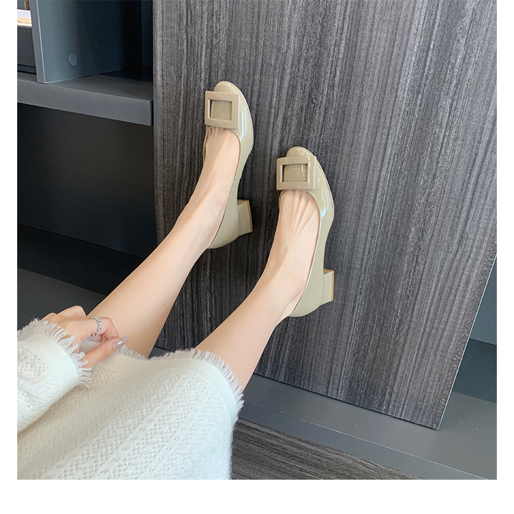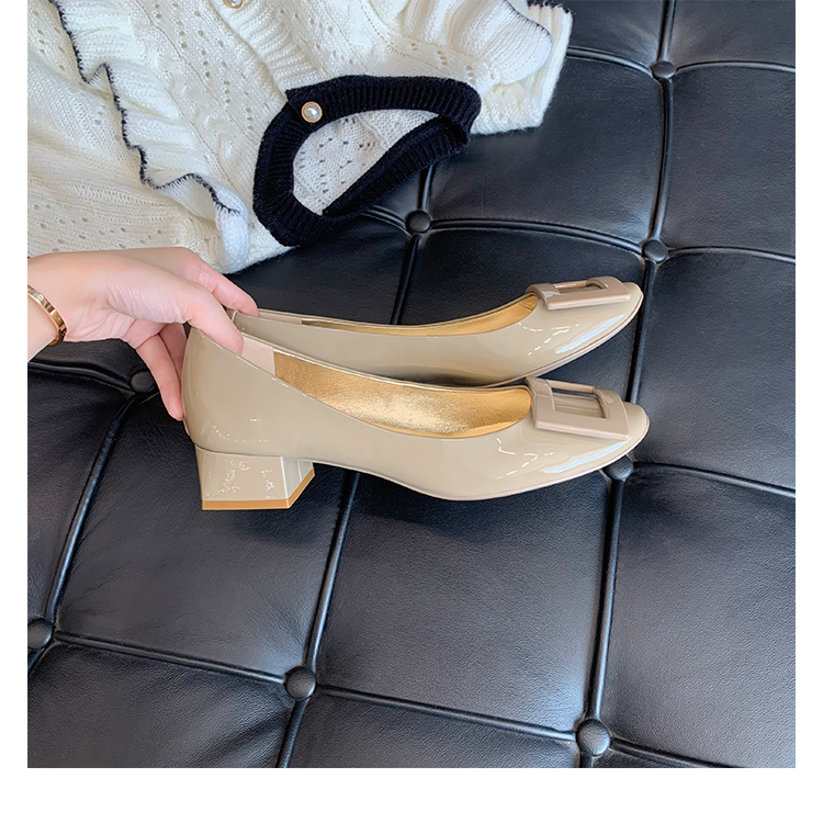 재고 포도 엄마 프렌치 클래식 스퀘어 버클 얕은 입 라운드 헤드 우아한 청키 힐 샤넬 스타일 여성의 여름과 가을 싱글 레이어 신발스토어 가기