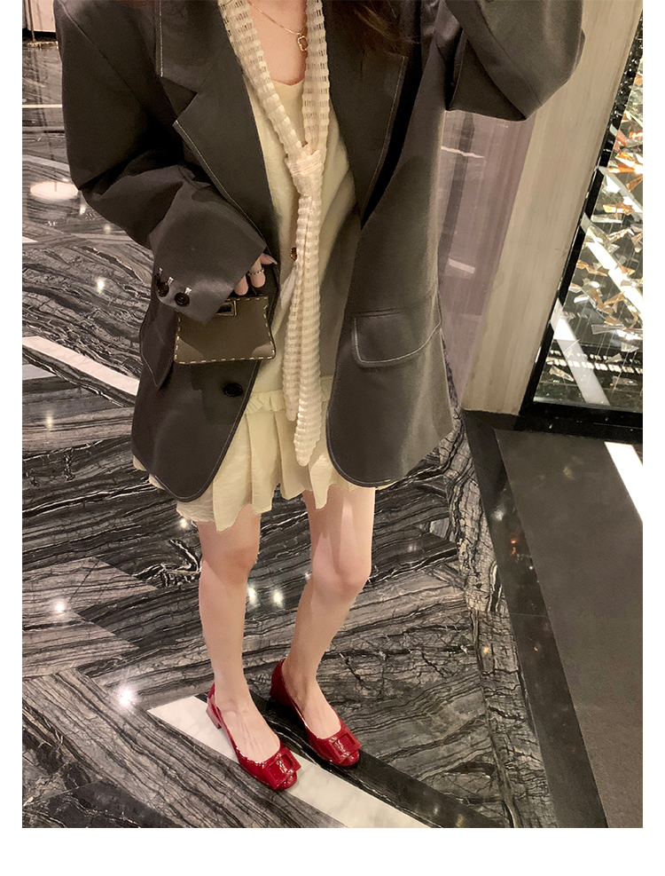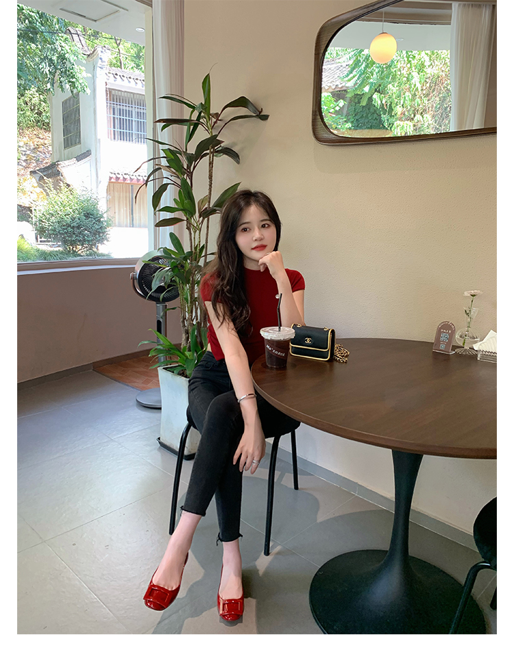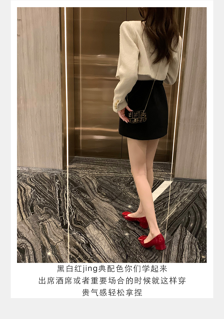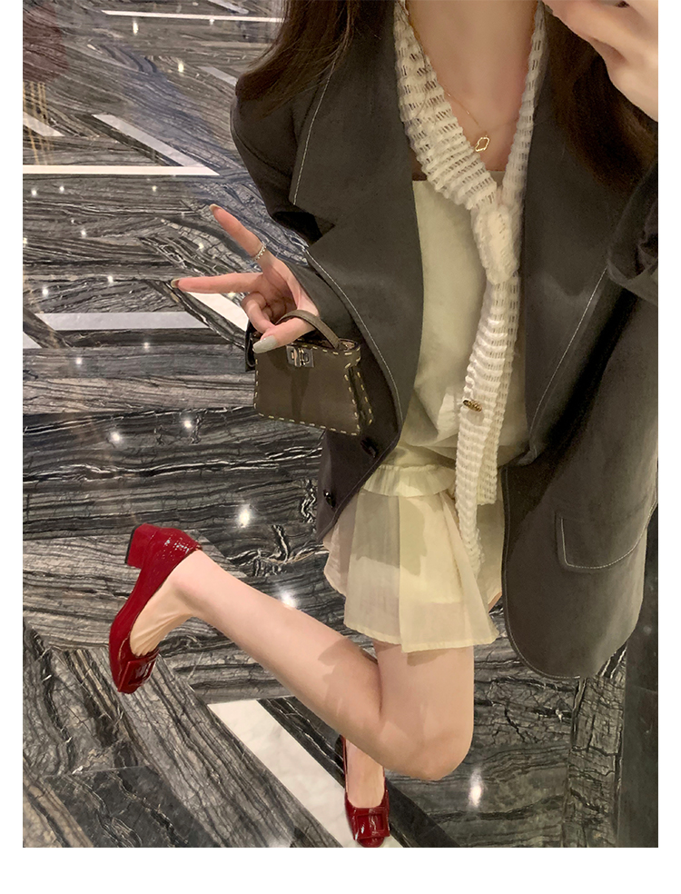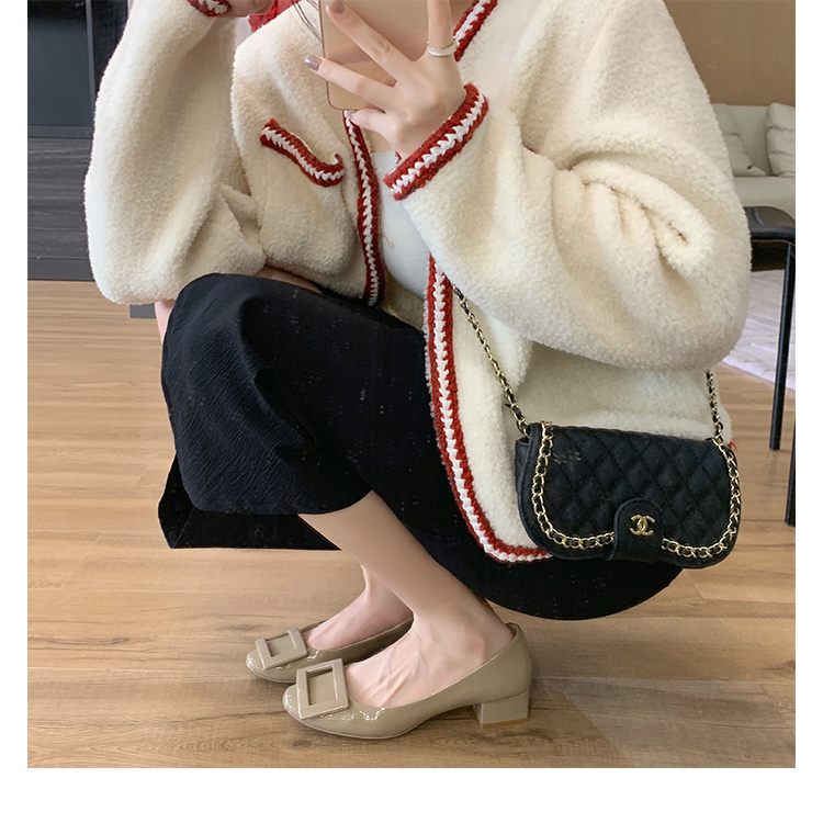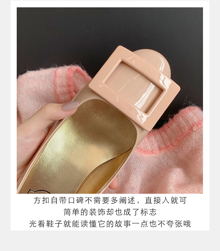 재고 포도 엄마 프렌치 클래식 스퀘어 버클 얕은 입 라운드 헤드 우아한 청키 힐 샤넬 스타일 여성의 여름과 가을 싱글 레이어 신발스토어 가기