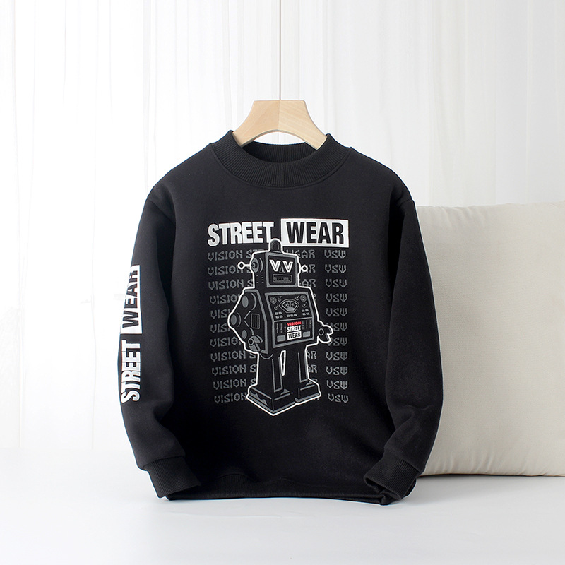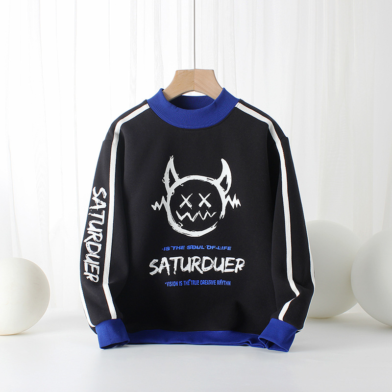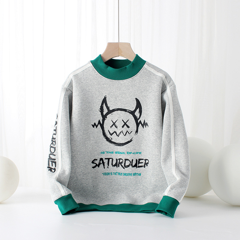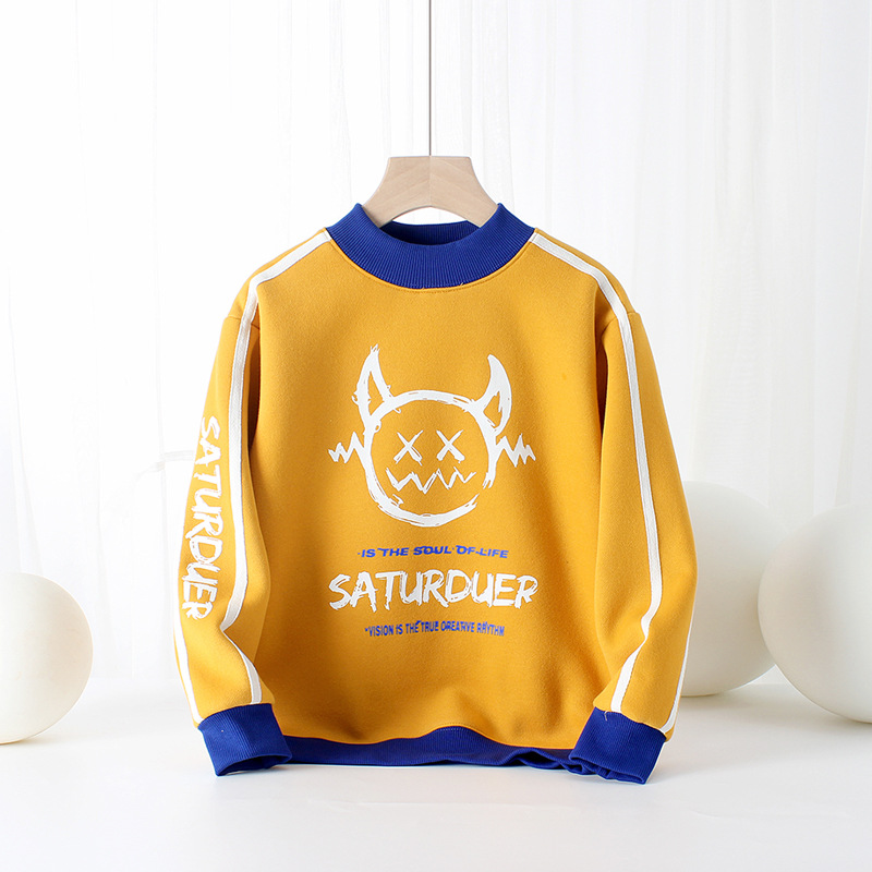 아동복 겨울 한국 스타일 새로운 어린이 기모 스웨터 대형 어린이 하이 칼라 따뜻한 긴 소매 남아 스웨터