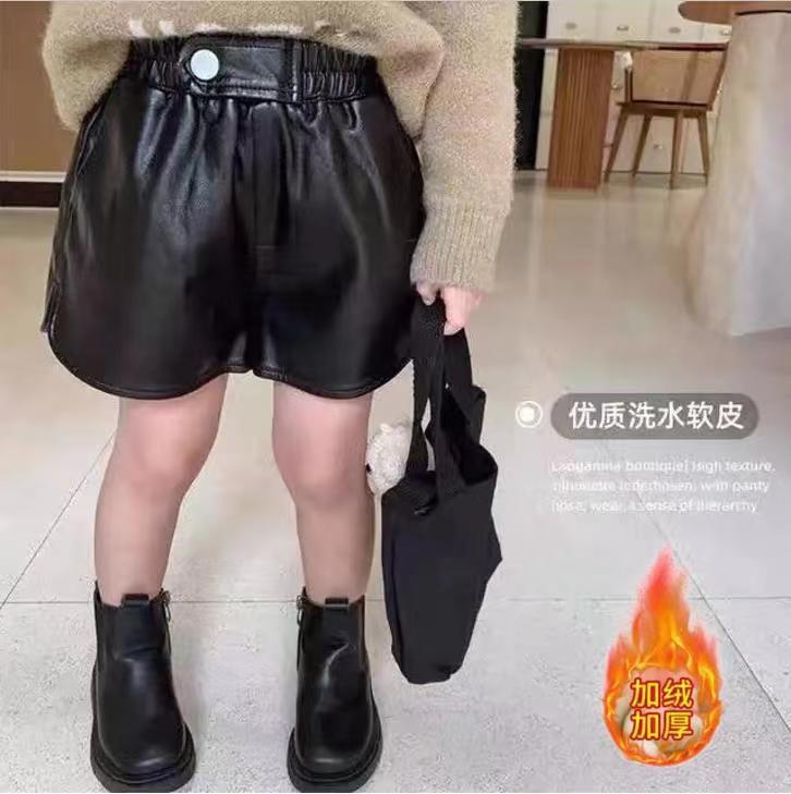한국 스타일 패션 여아 가죽 반바지 겨울 신상 아동복 패셔너블하고 세련된 여아용 기모 바깥옷 바지 도매