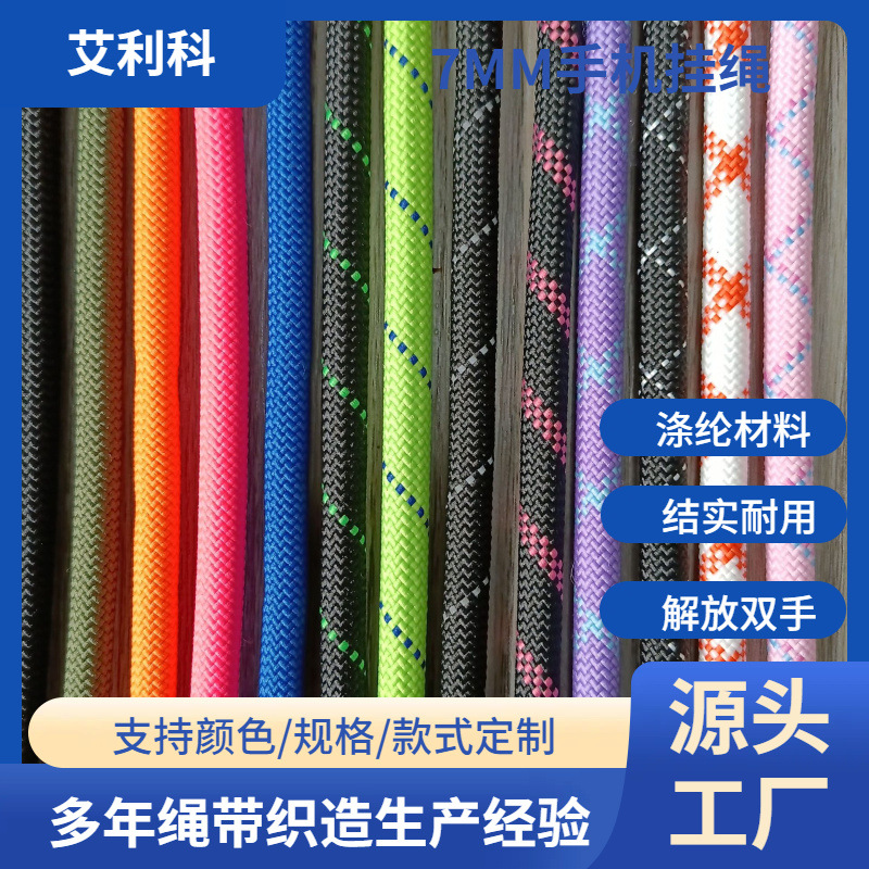 도매 폴리에스터 태그 끈 플러시 끈 가죽 끈 7mm 8mm 휴대폰 스트랩 크로스백 라운드 끈 이중 색상 끈
