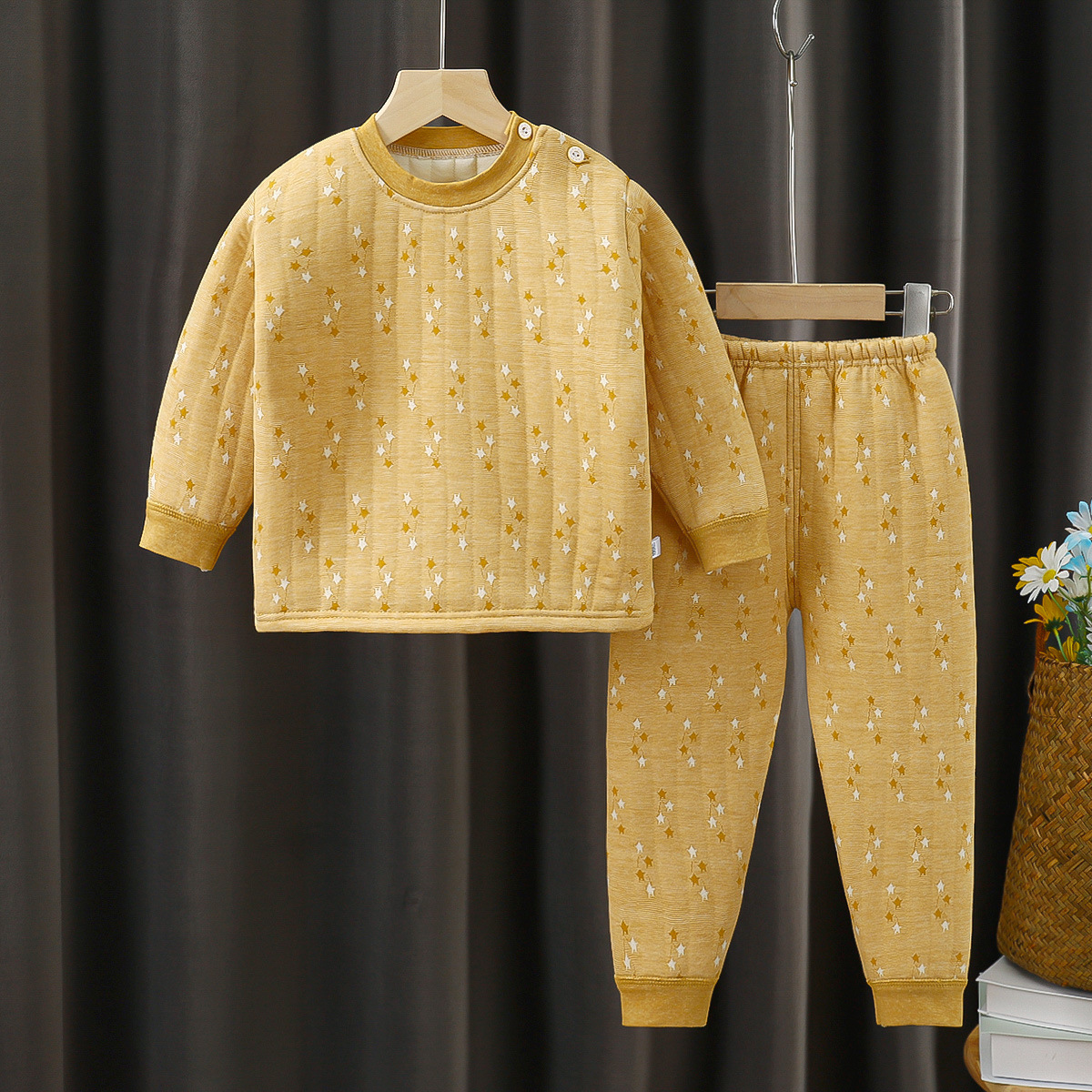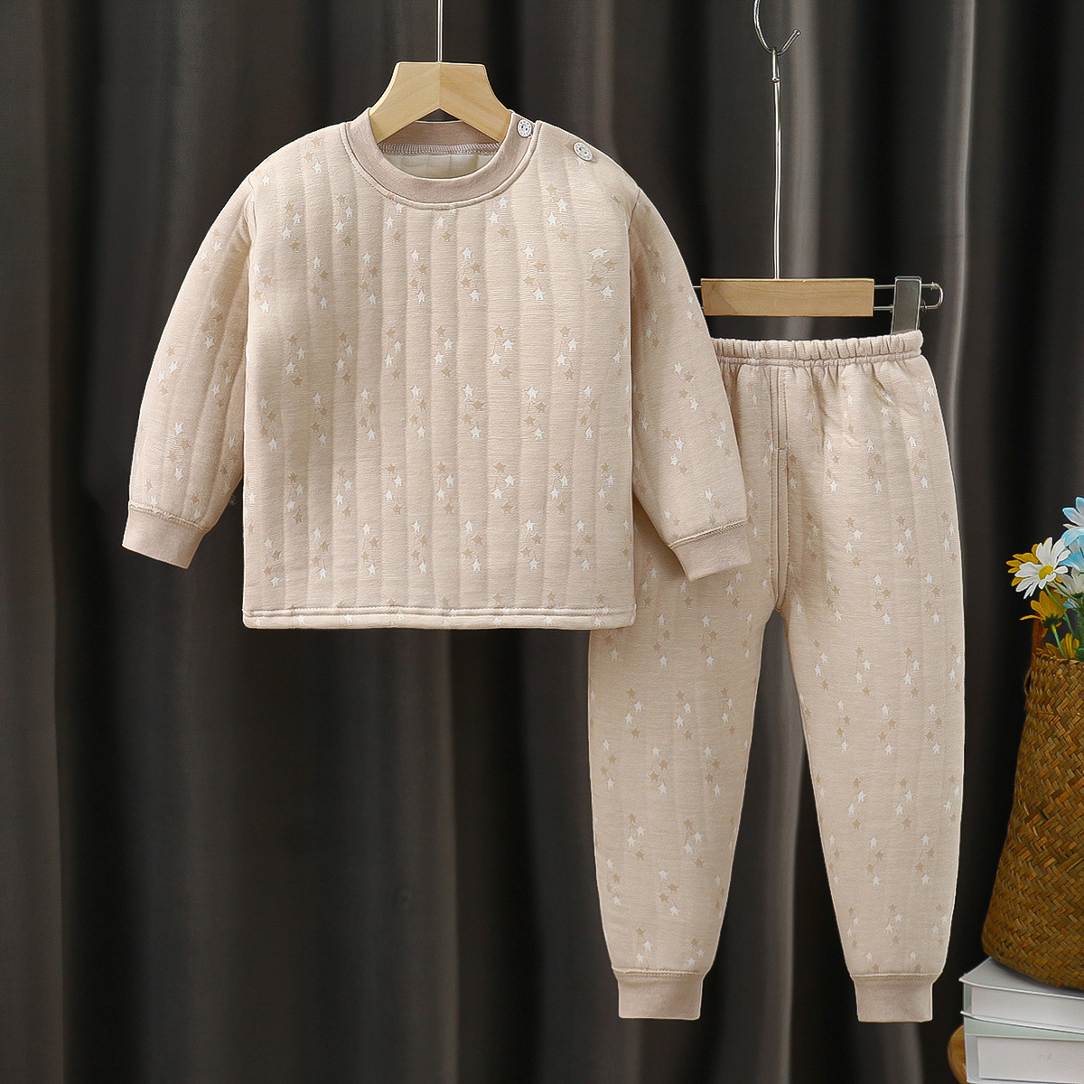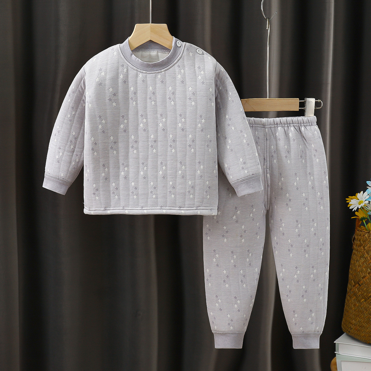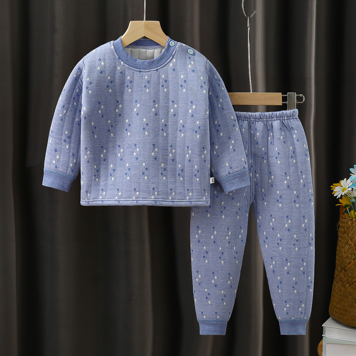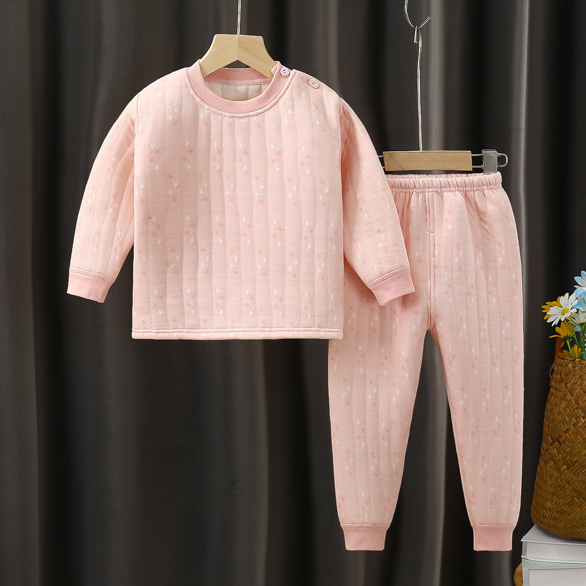 새로운 봄, 가을, 겨울 어린이 보온복 세트, 삼중 누빔 아기 가을옷, 중소 어린이용 투피스 세트스토어 가기