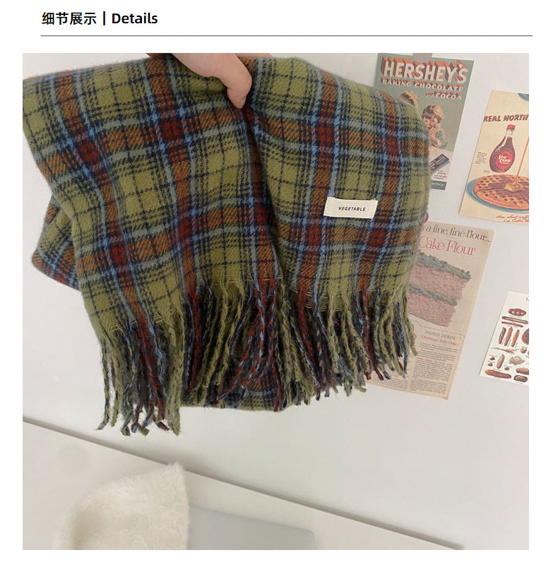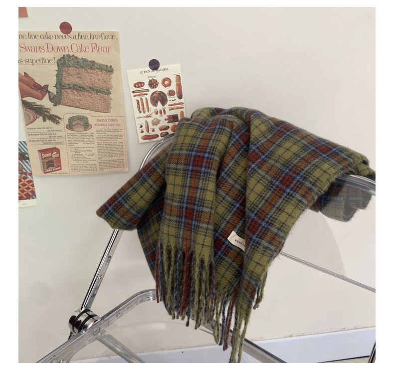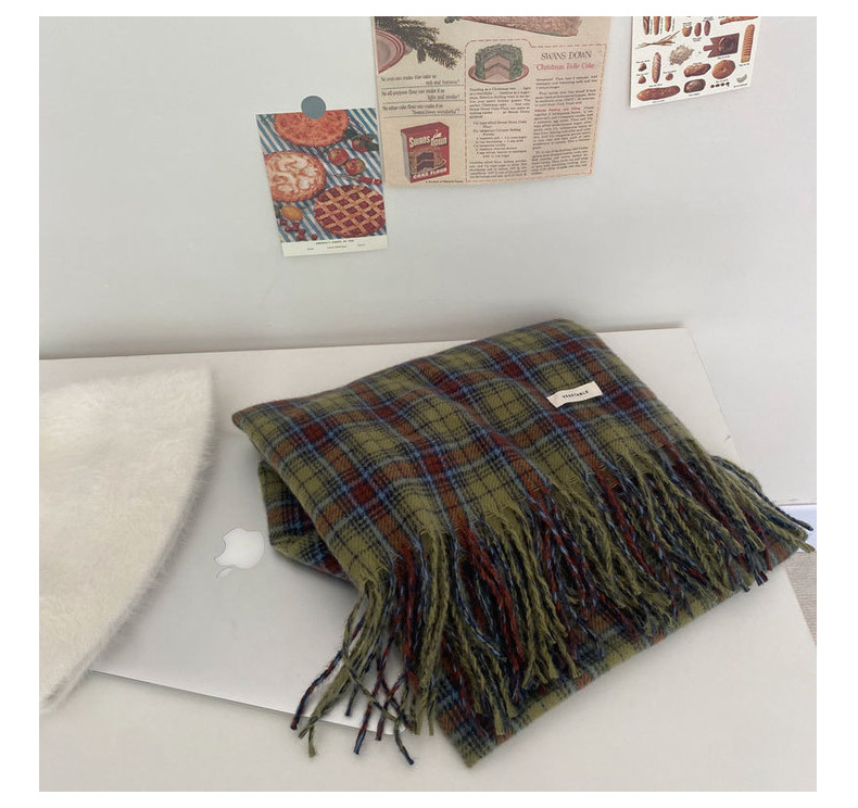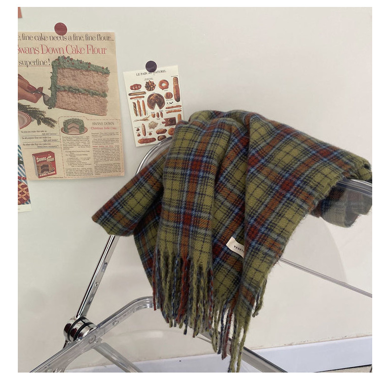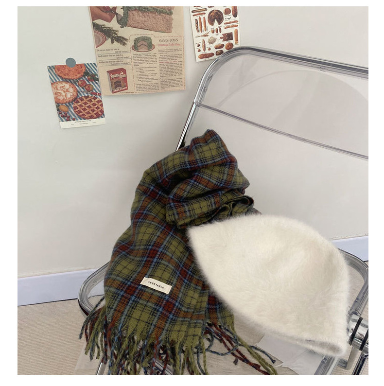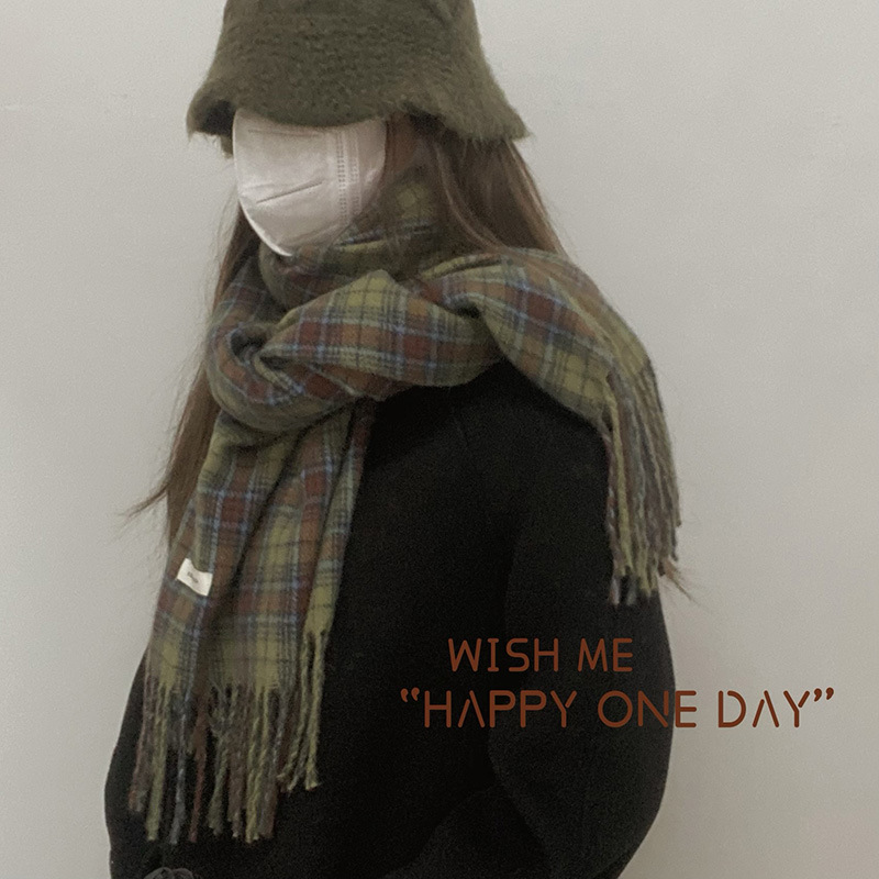 * 피클 그린 * 레트로 그린 격자 무늬 스카프 여성의 겨울 성격 고급 감각 따뜻한 숄 스카프 한국 스타일 새로운 스타일스토어 가기