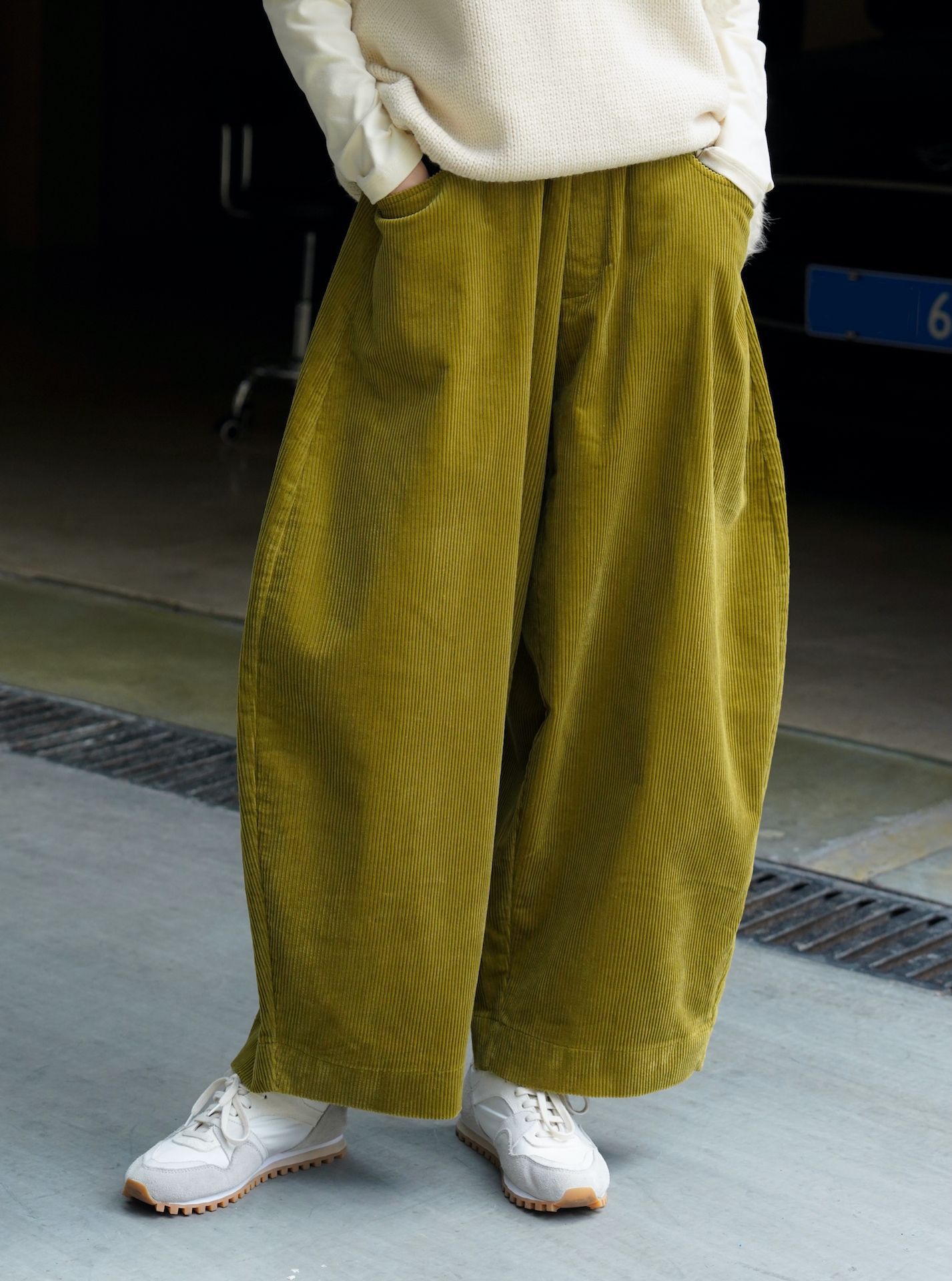 Lou Fu 새로운 일본식 게으른 스타일 아크 코듀로이 캐주얼 바지 와이드 레그 탄성 허리 느슨한 슬리밍 바지 여성용