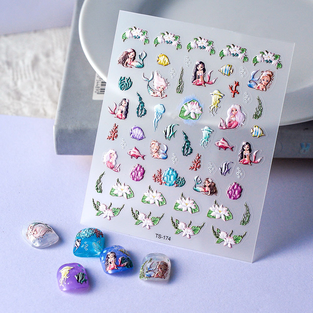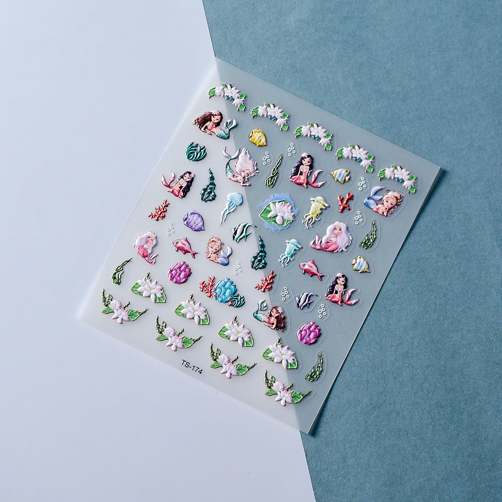 갑옷 장식 스티커 동화 인어 네일 스티커 5D 오션 네일 스테레오 양각 흔적 없음스토어 가기