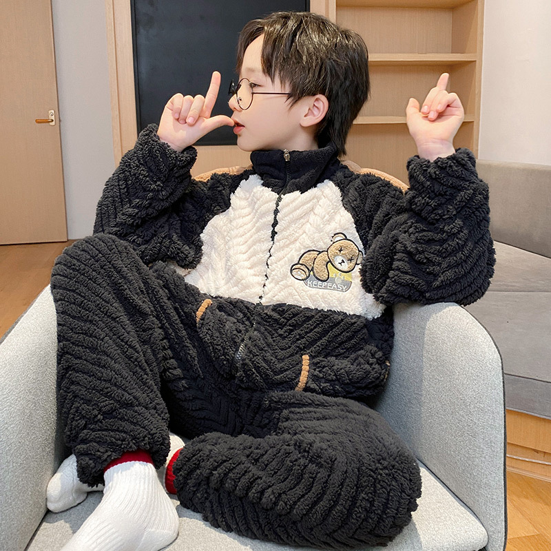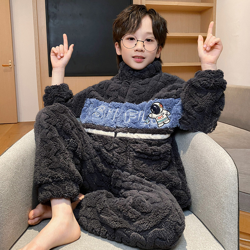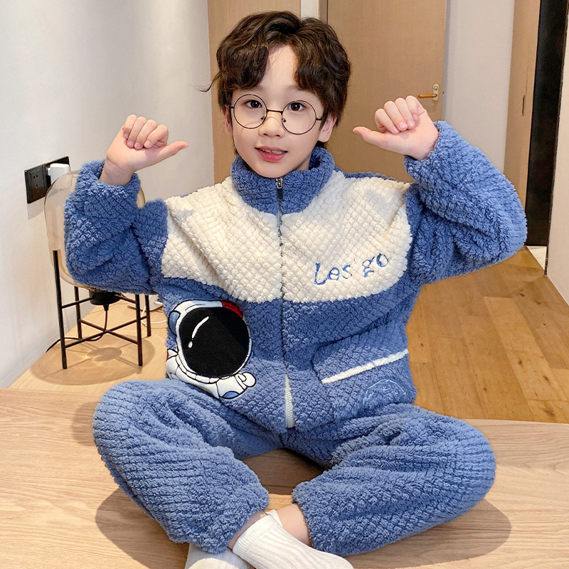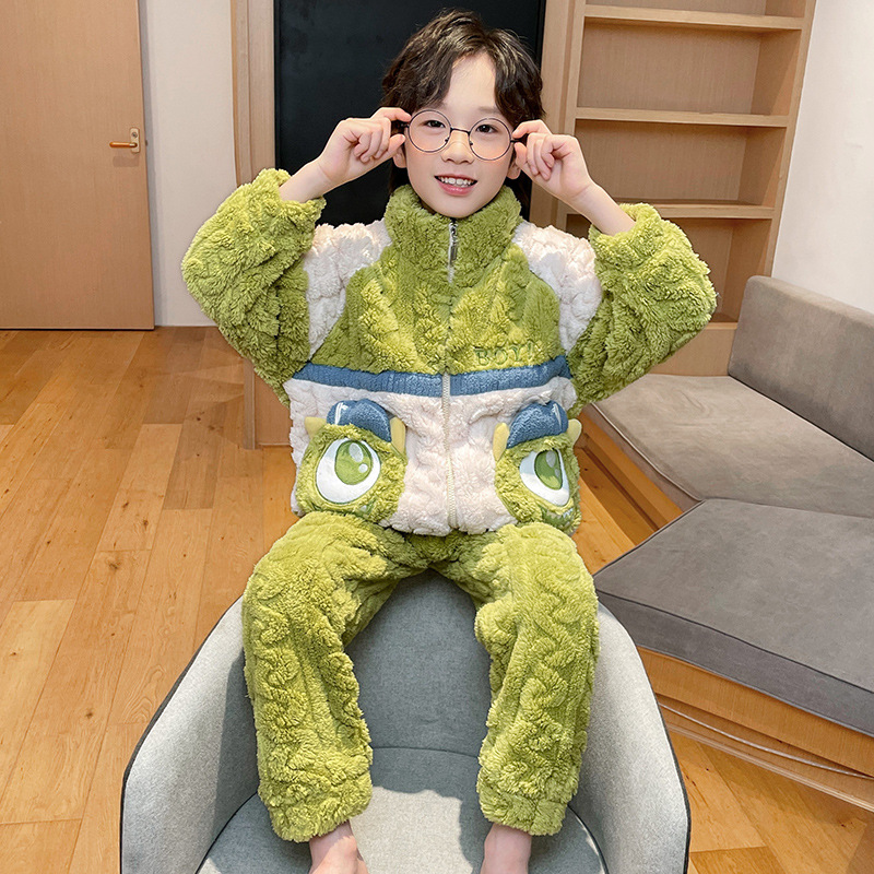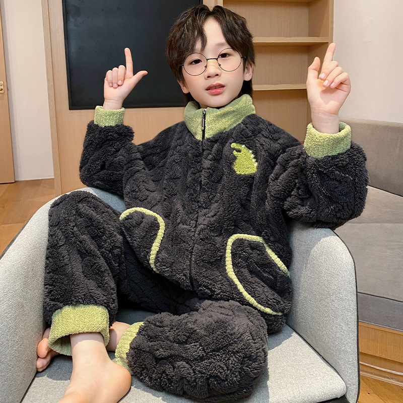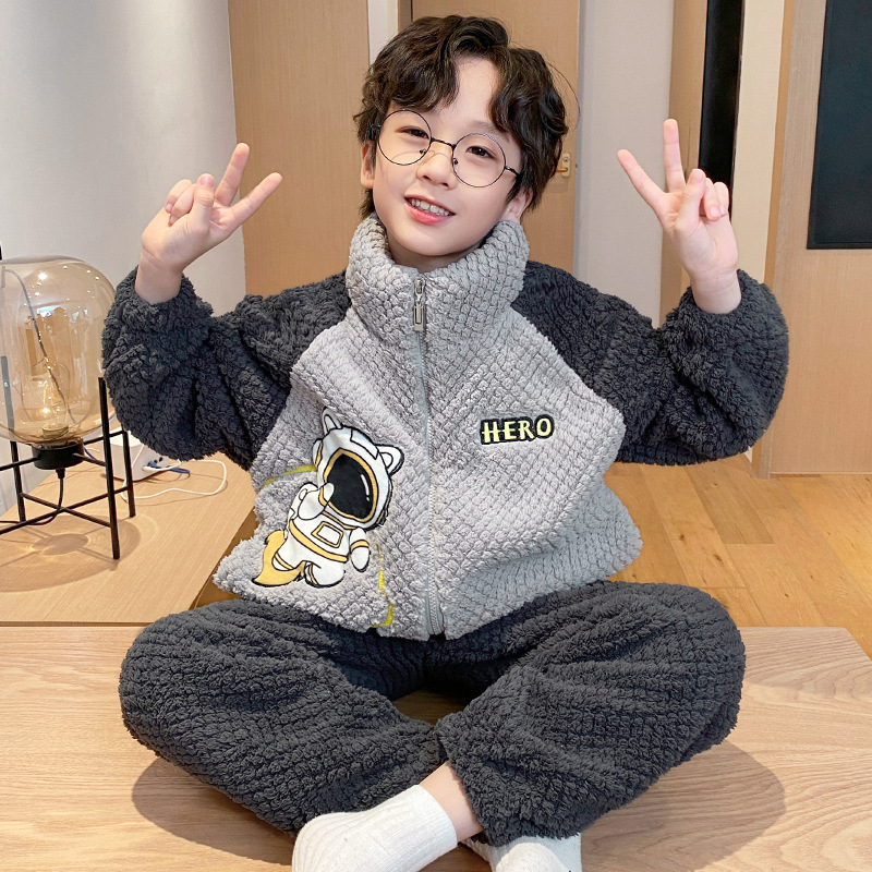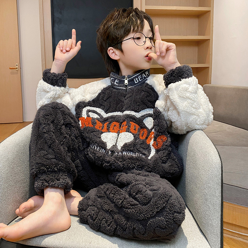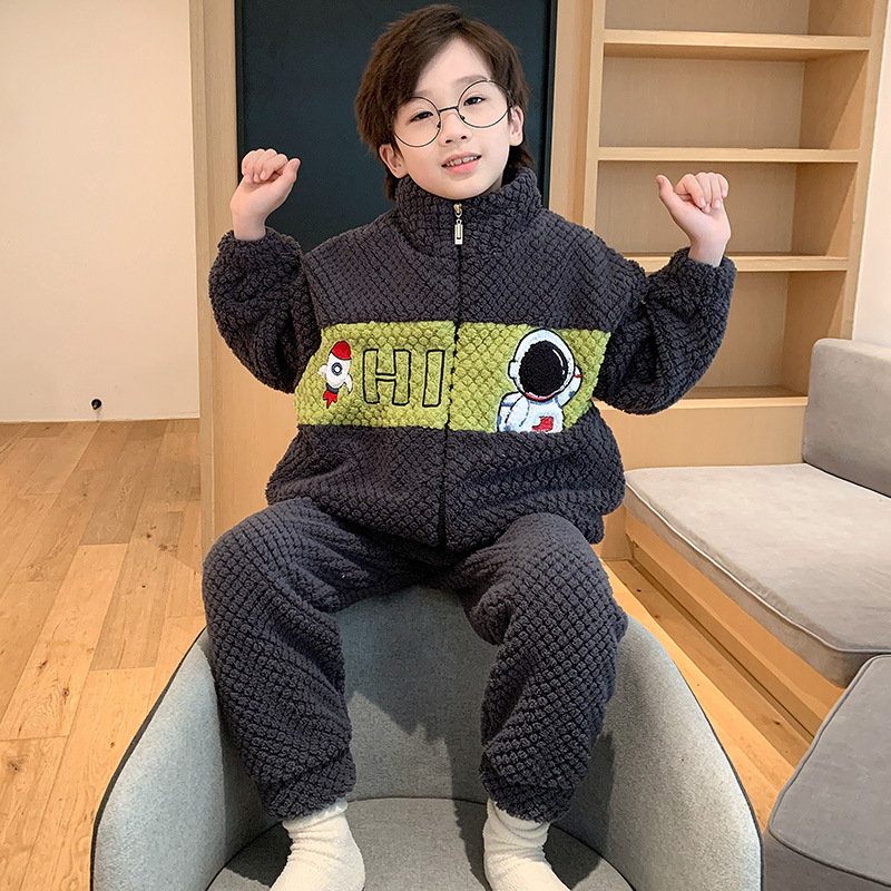 어린이 잠옷 소년 가을과 겨울 산호 양털 두꺼운 플란넬 아기 소년 중대형 어린이 가정 의류 세트