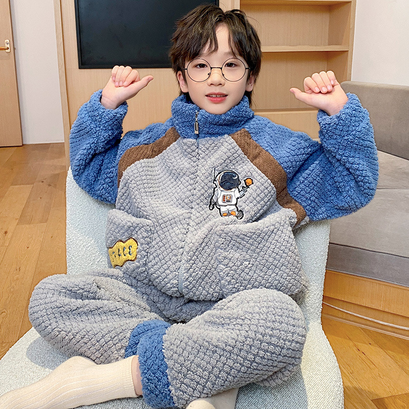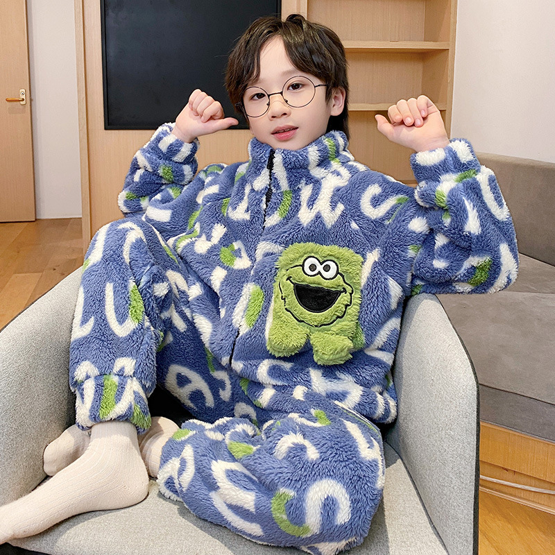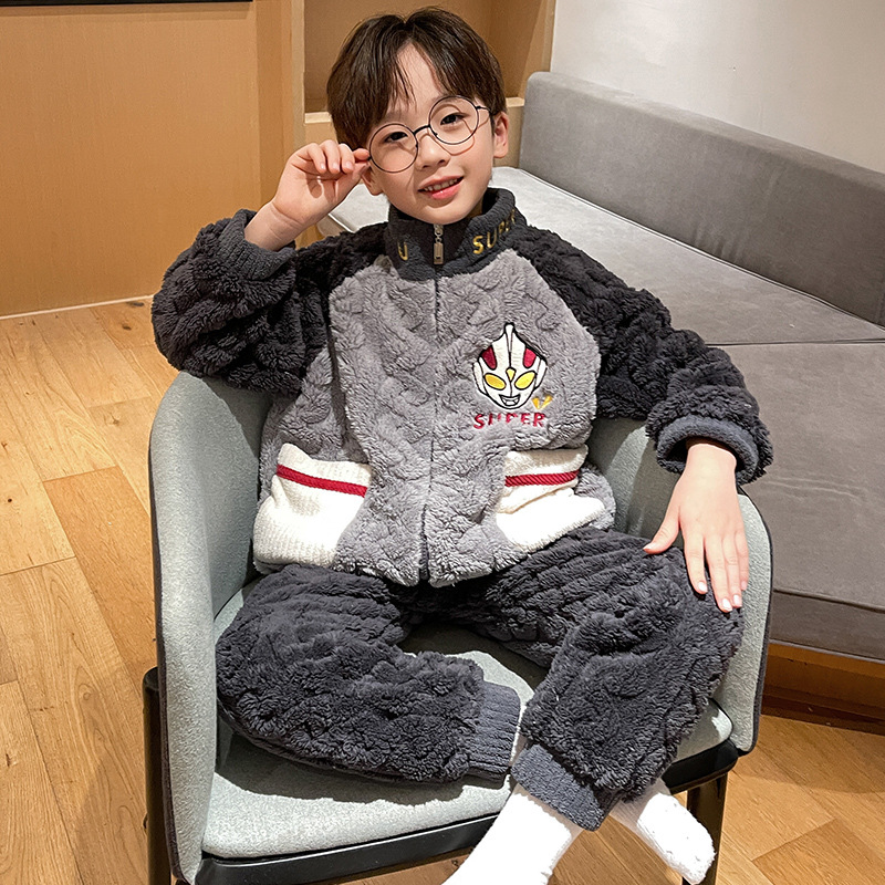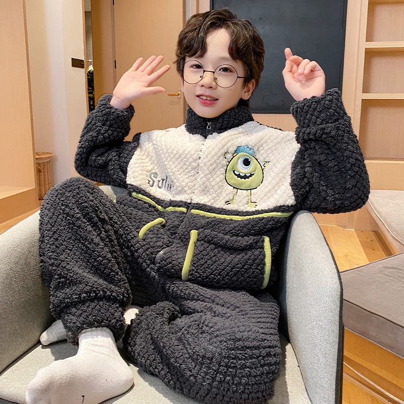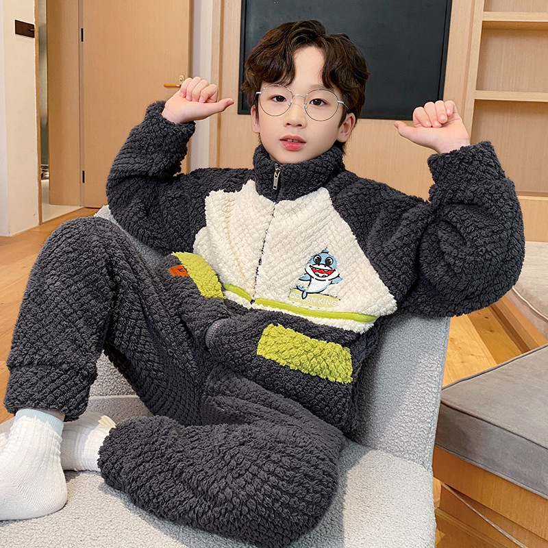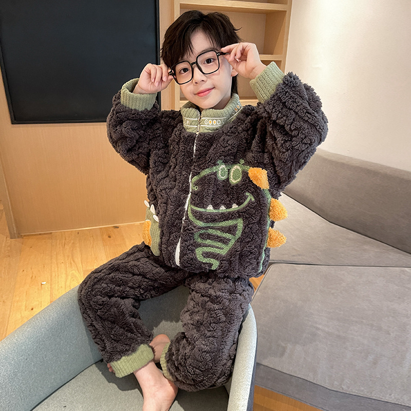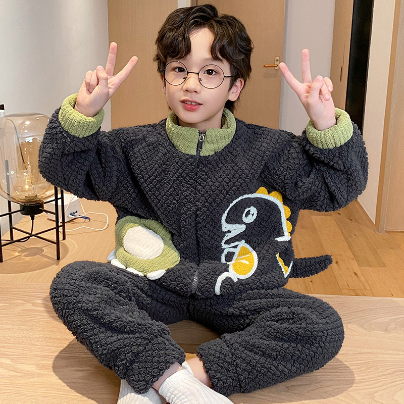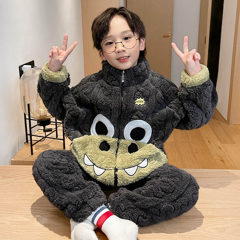 어린이 잠옷 소년 가을과 겨울 산호 양털 두꺼운 플란넬 아기 소년 중대형 어린이 가정 의류 세트
